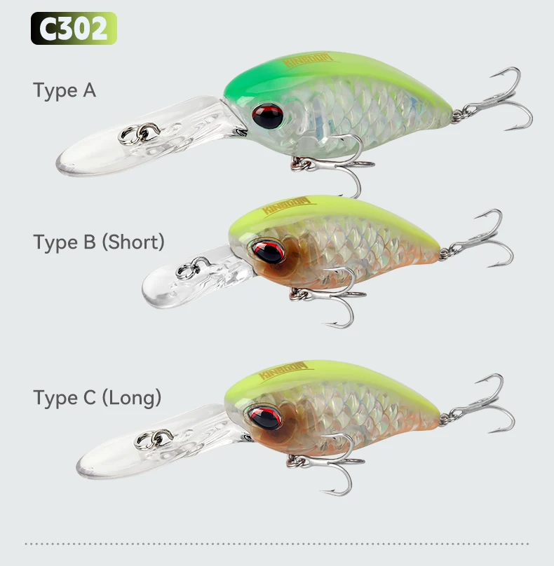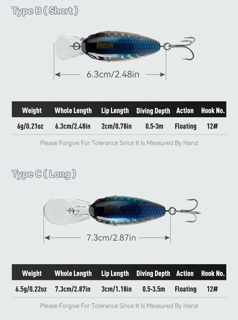 ● Tamaño: Tipo A-80 mm-10,5 g; Tipo B-63 mm-6 g; Tipo C-73 mm-6,5 g (la longitud incluye el labio)