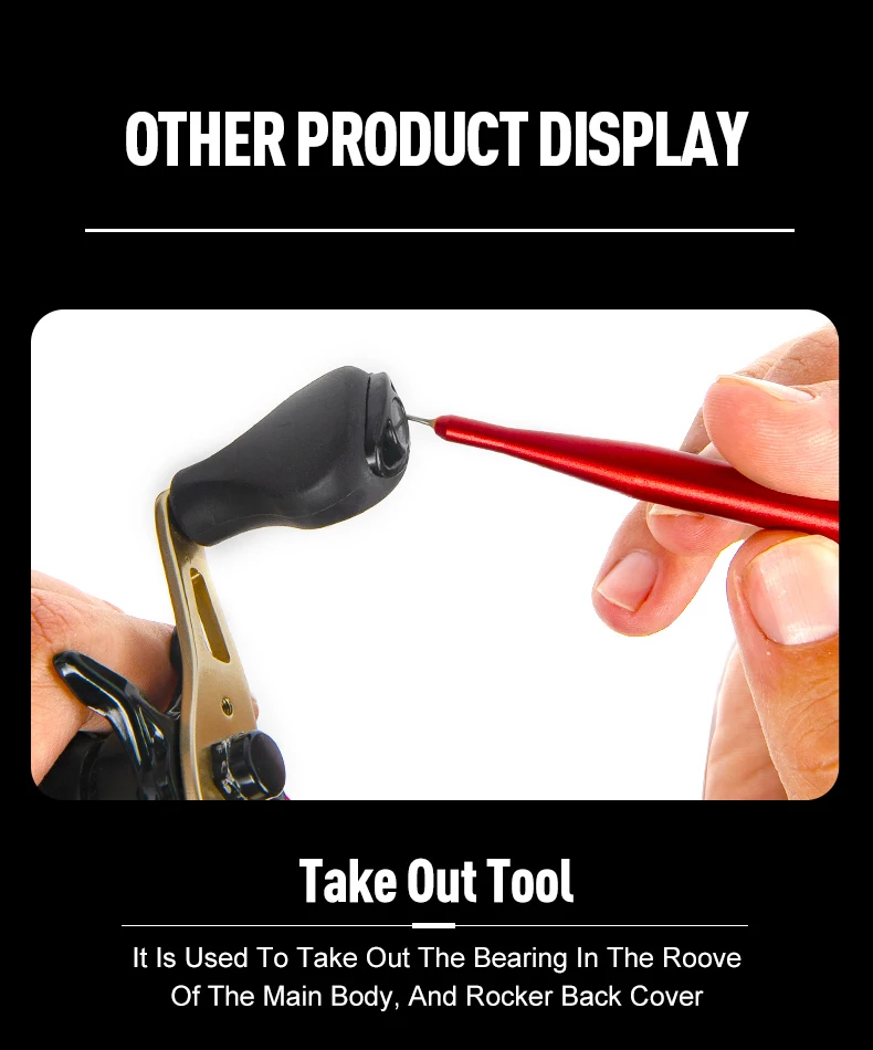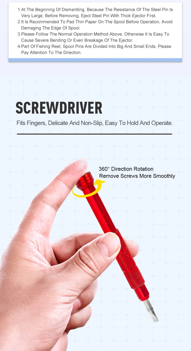 2.Multi Head Screwdriver--Screwdriver has 5 different head,ti is suitable for the disassembly of shell screws of most of baitcasting and spinning reel.
