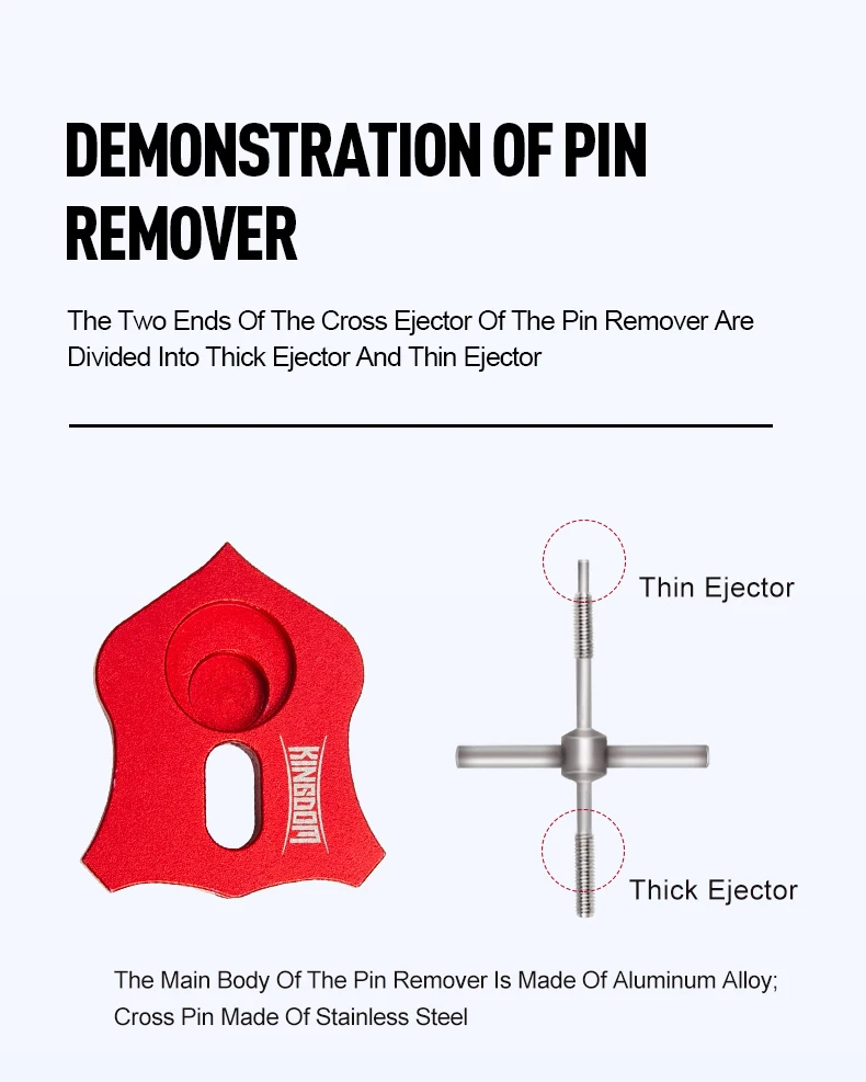 1.Use Demonstration Of Pin Remover--The two ends of the cross ejector of the pin remover are divided into thick ejector and pin ejector