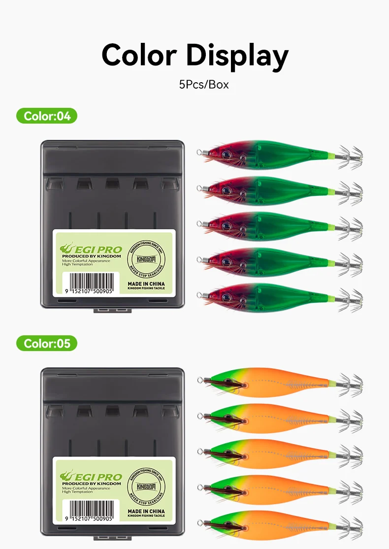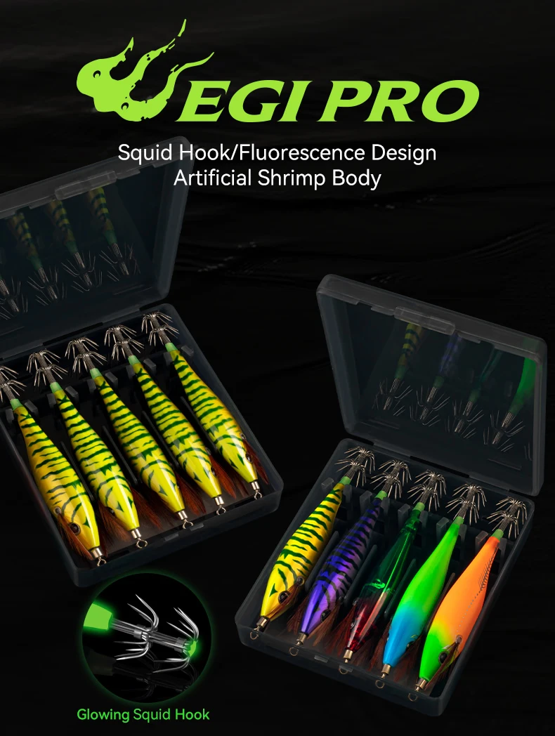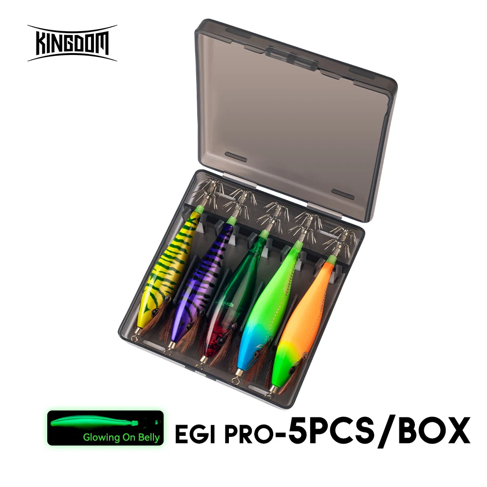 Kingdom Egi Pro Horizontal Calamar Jig Wood Camar Calamar Hook 5 unids/set Calamar Jigging pulpo sepia cebos para camarones de agua salada