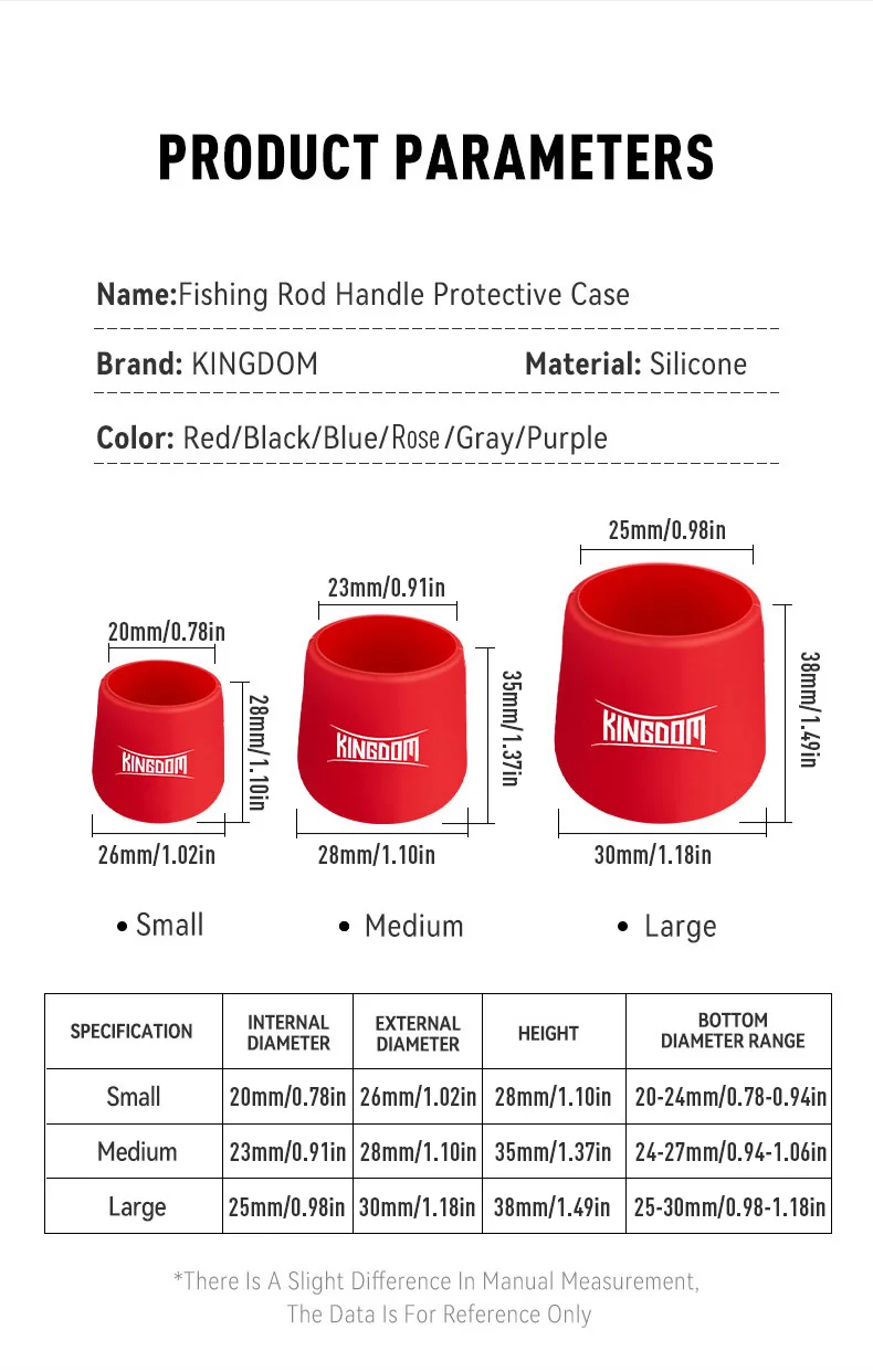 Kingdom-funda protectora con mango de caña de pescar negro, tapón de caña de silicona ajustado, Protector inferior, señuelo, cebo, accesorios para aparejos de pesca