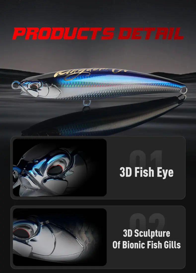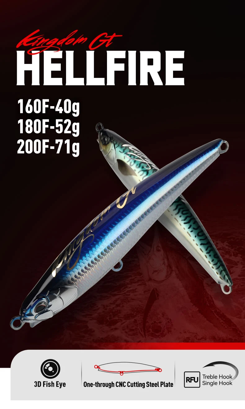 Kingdom GT Hellfire Floating Pencil Sea Fishing Lure 160mm 180mm 200mm 40g 52g 71g Z Action Artificial Hard Bait Saltwater Lure