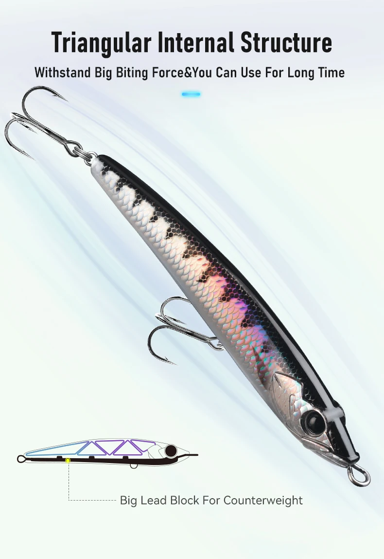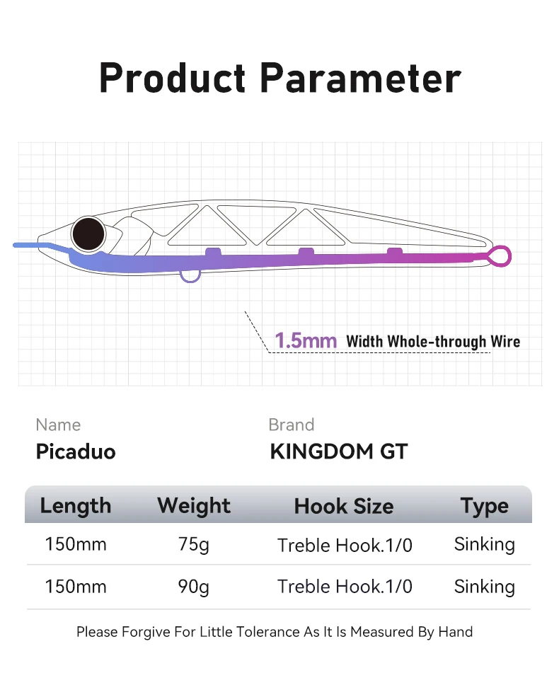 Longitud: 150 mmPeso: 75g 90gGancho: Gancho triple.1/0Acción: Hundirse