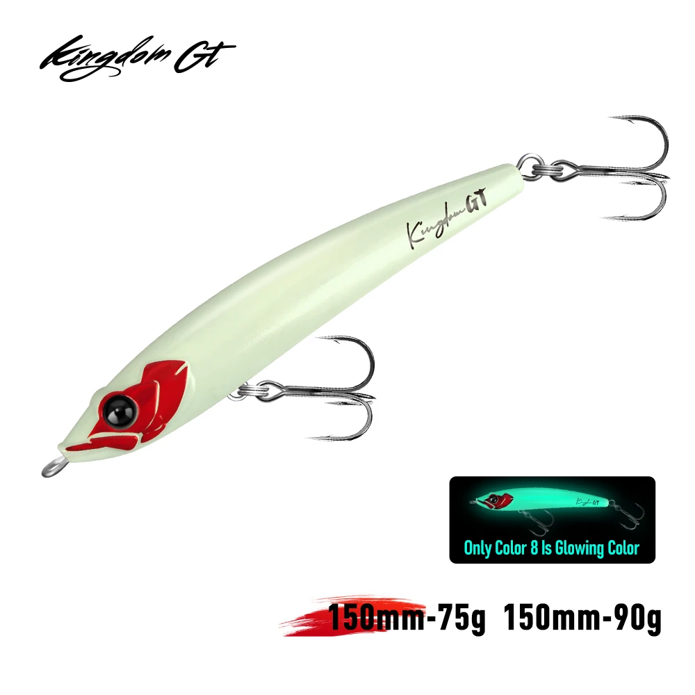 Kingdom GT señuelo de pesca en el mar 150mm 75g 90g pesca con curricán que se hunde Stickbait cebo duro Artificial para atono marino GT pesca en barco