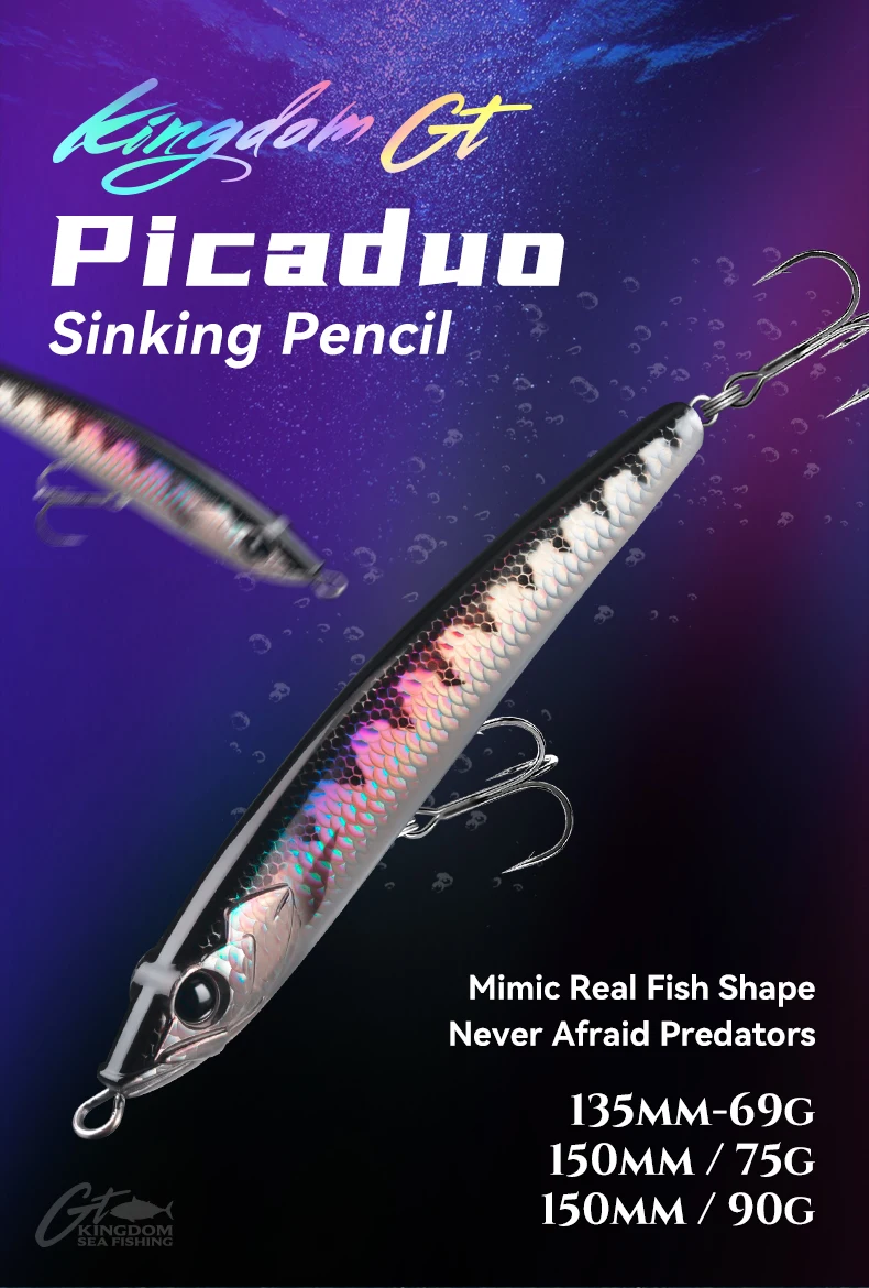 Kingdom GT señuelo lápiz hundido 69g 75g 90g juego grande Stickbait cebo duro Artificial señuelo de curricán de agua salada para pesca en el mar atún
