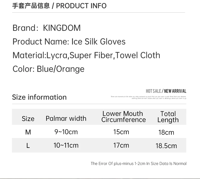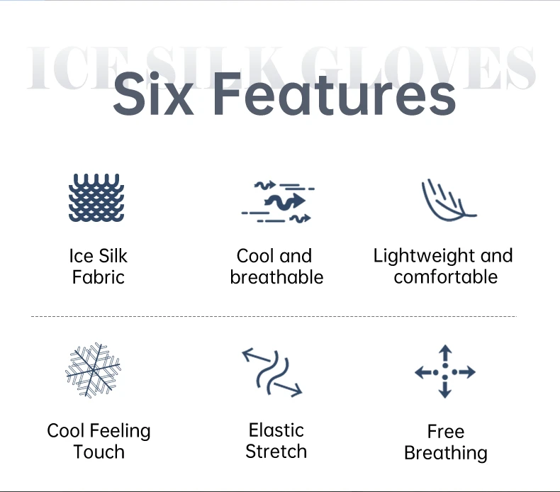 5. La tela de seda de hielo Lycra disfruta de las siguientes ventajas: la parte posterior de los guantes de mano está hecha de lycra de hielo, tacto fresco, absorción de humedad y sudor, súper permeabilidad al aire.