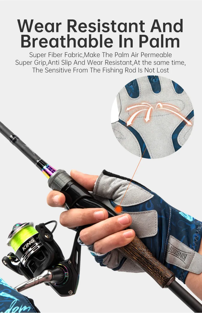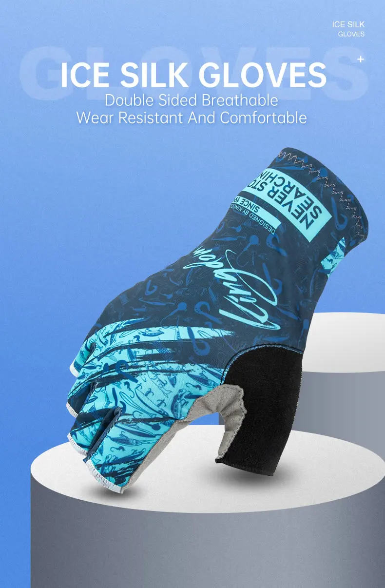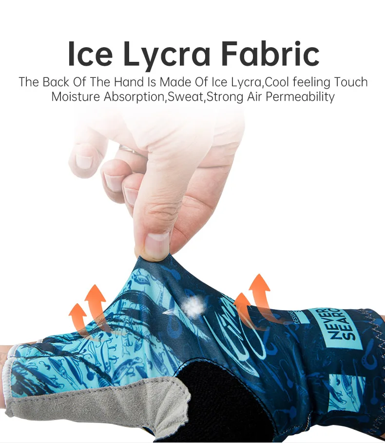 Kingdom Ice Lycra-guantes de pesca antideslizantes de tela para deportes al aire libre, transpirables, para ciclismo, bicicleta, Camping, senderismo, guante sin dedos