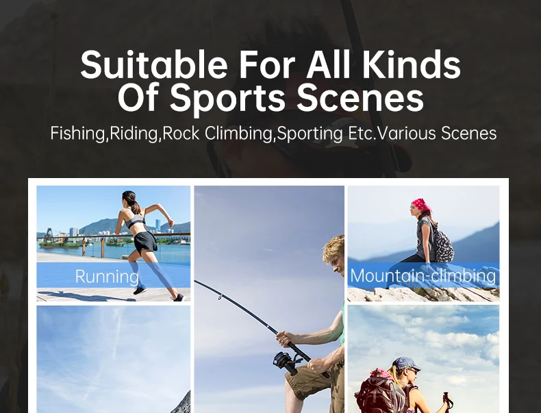 1.Adecuado para todo tipo de escenas deportivas: pesca, equitación, escalada en roca, montañismo, senderismo, fitness, etc.