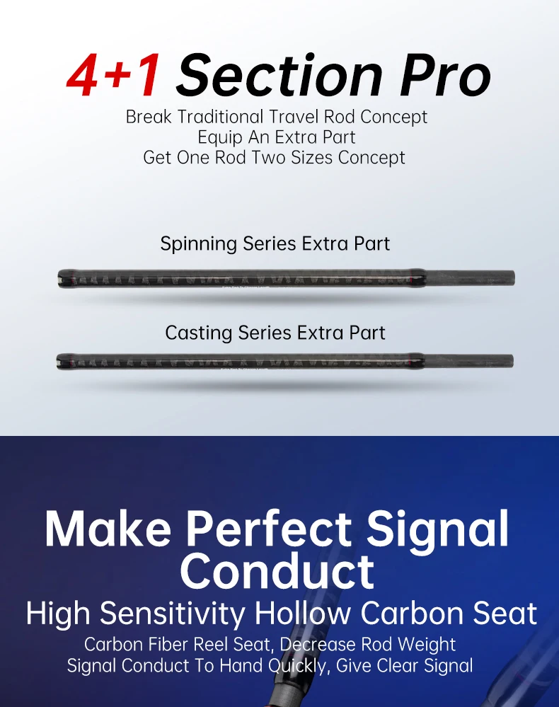 Caña de viaje de alta calidad Kingdom: cañas de pescar de 4+1 secciones