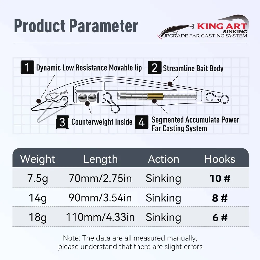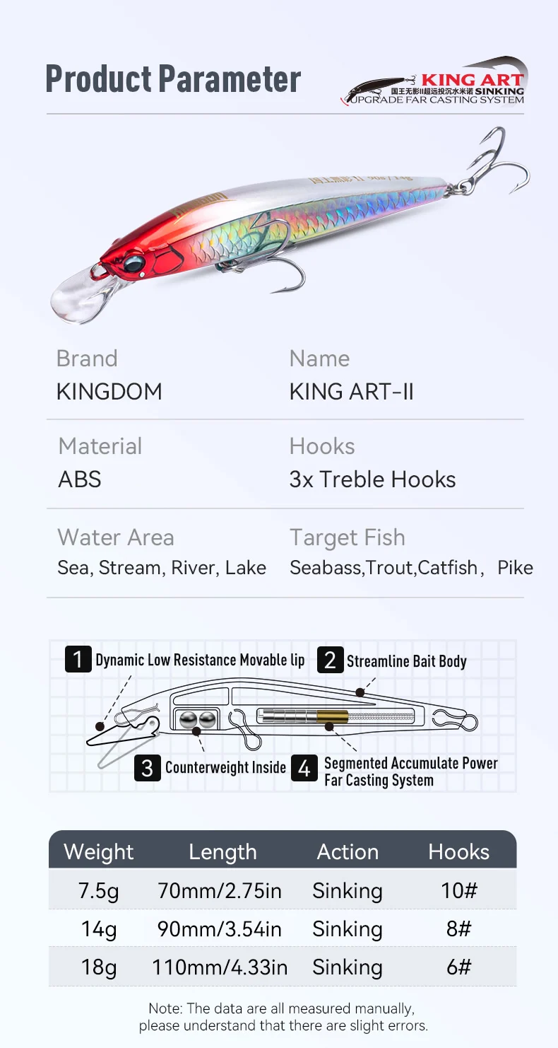 La calidad del wobbler es aceptable. A pesar del sistema de lanzamiento largo, el Kingart II de 14g vuela tan lejos como el más ligero Kingart sinking minnow de 9g.