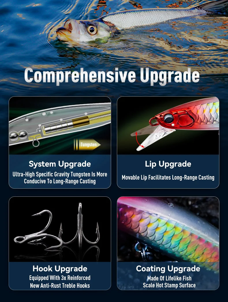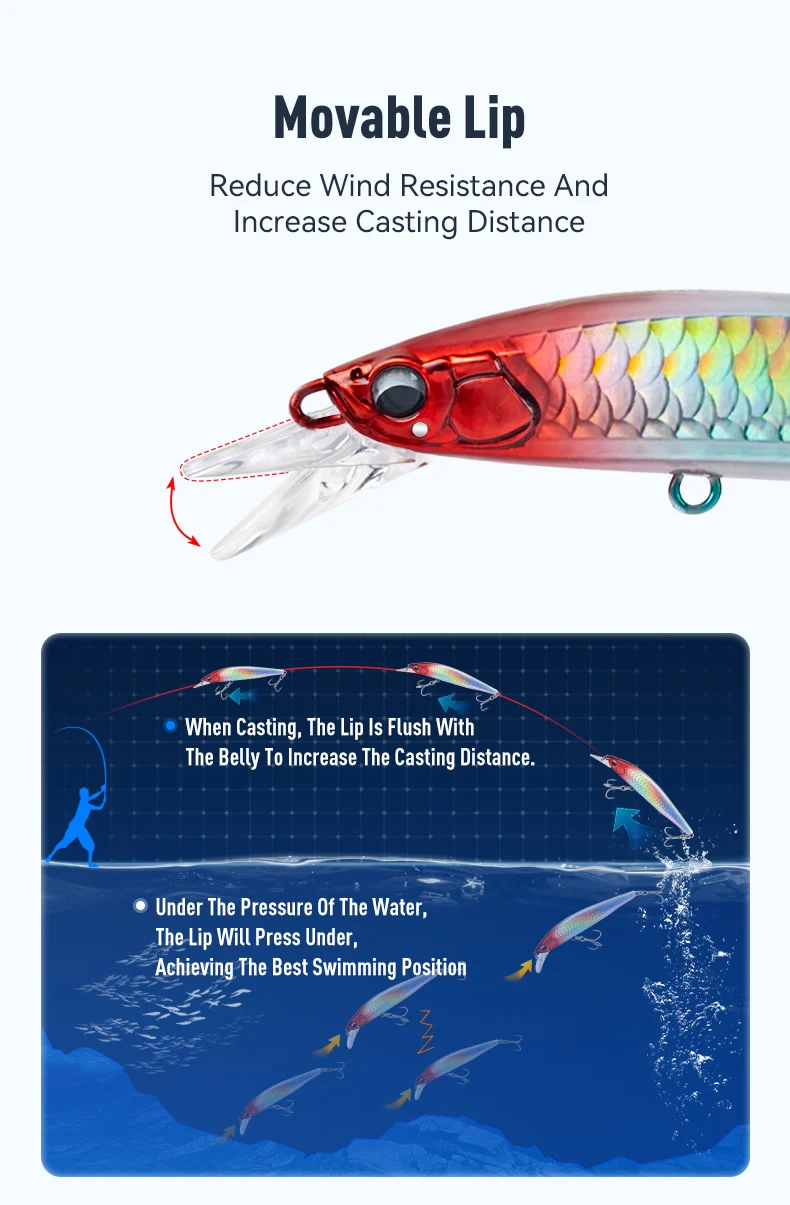 Estos wobblers lanzan lejos y también se hunden profundamente. Cuchara móvil en la parte delantera y un buen sistema de lanzamiento.