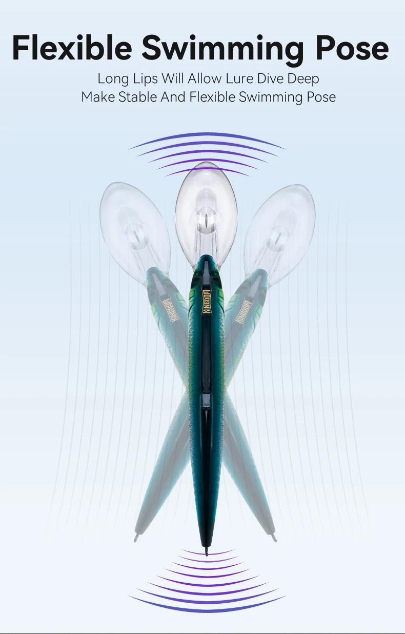 ● Labio largo y ancho: al recuperar o curricán, puede bucear a cierto nivel rápidamente. Diferentes velocidades de recuperación tienen diferentes acciones.