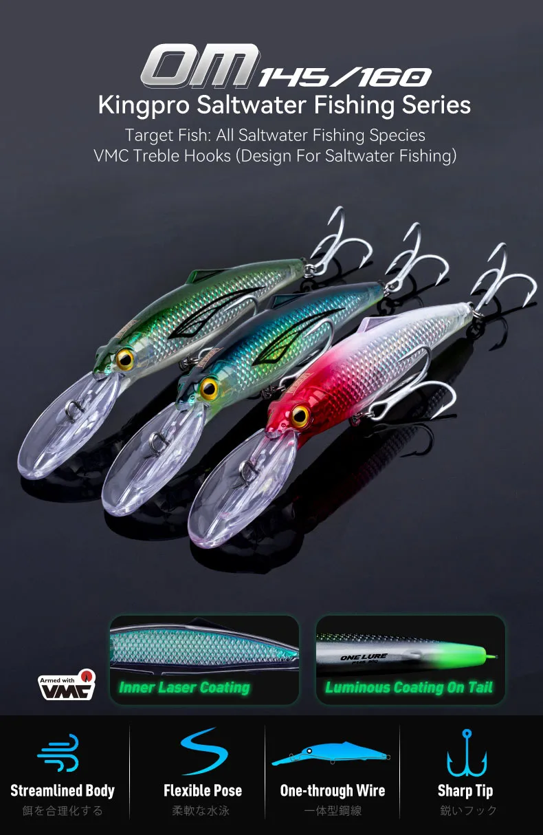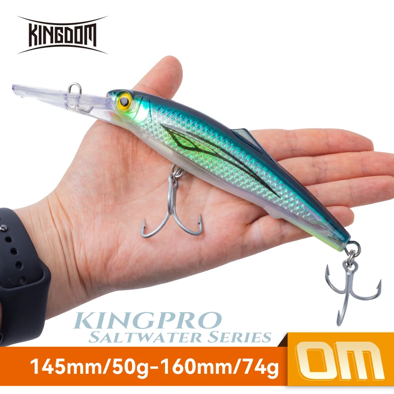Kingdom KingproOM 50g 145mm 74g 160mm agua salada flotante Minnow revestimiento interior láser cebo Artificial accesorios de pesca de mar señuelo