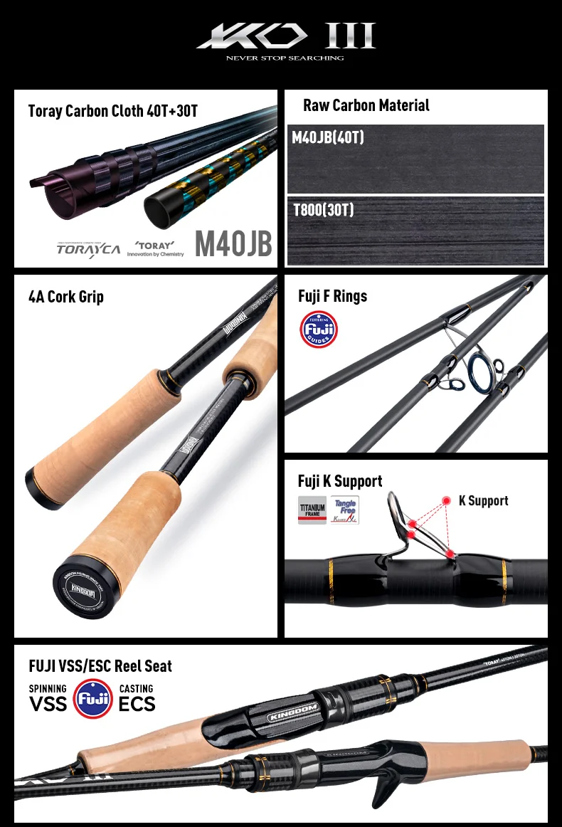 Kingdom KO-III caña de pescar giratoria de alto carbono XF MF acción Fuji anillo señuelo varilla Fuji carrete asiento para caña de pescar de lanzamiento de Lucio bajo