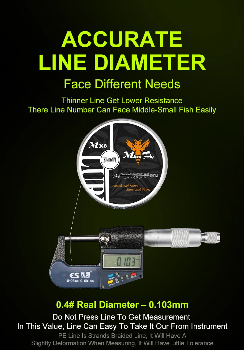 Kingdom Micro Fly 100M 150M Trenza PE Señal de Pesca 4 Hilos 0,2#/0.4#/0.6# Distancia de lanzamiento lejano de 9-12 libras súper rígida y fuerte