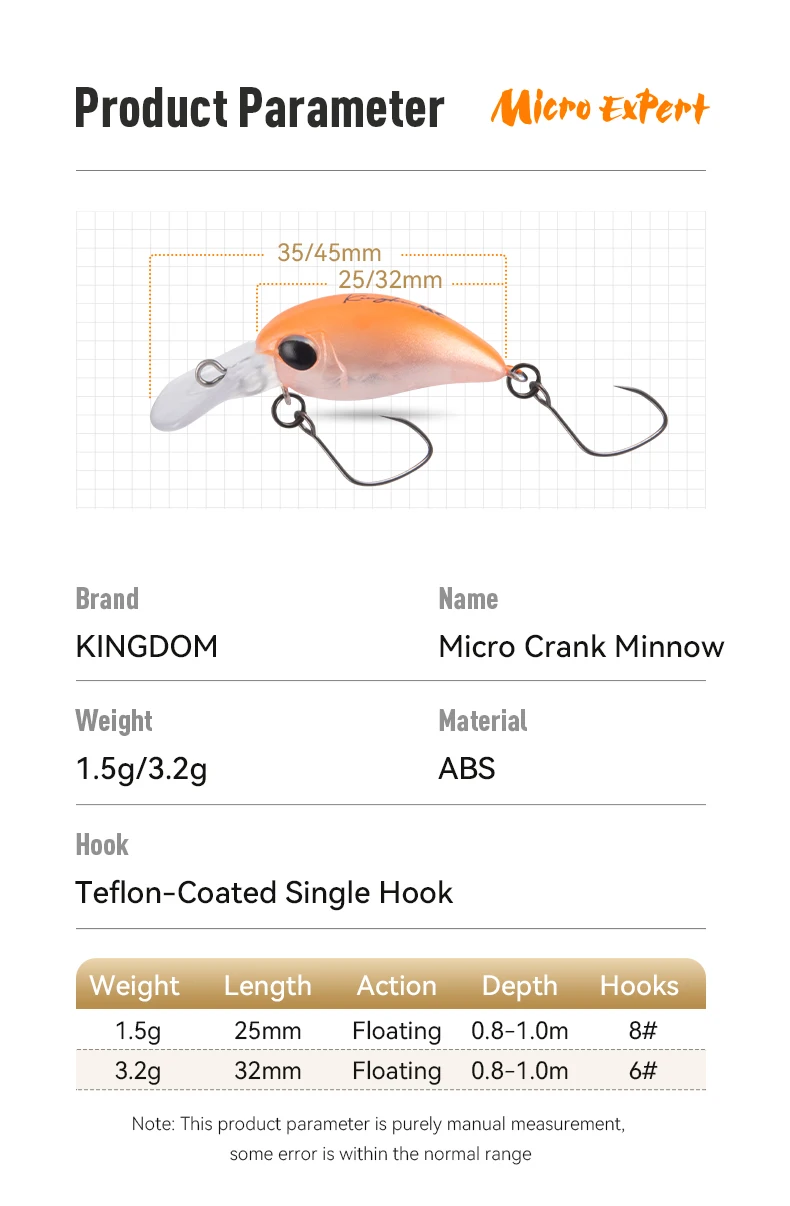 Kingdom Micro manivela Minnow señuelo 3/4/5 Uds 1.5g 25mm 3.2g 32mm flotante Artificial Crankbaits Wobblers duros para pesca de trucha y Lucio