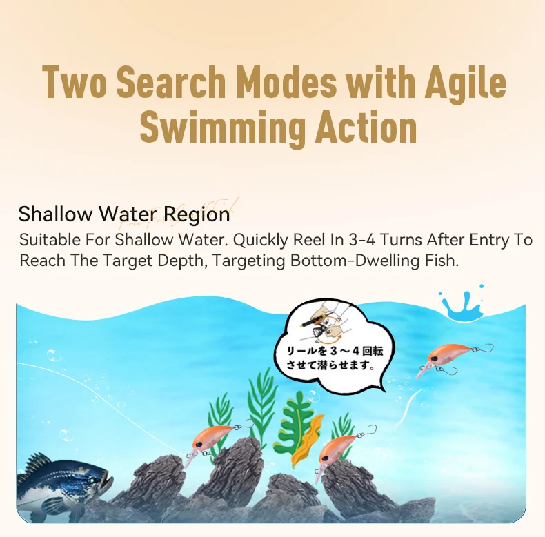 - Los modelos de buceo poco profundo (3-5 pies) son comunes para los pececillos con manivela pequeña, lo que los hace adecuados para la pesca cercana a la superficie.