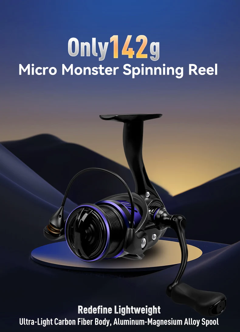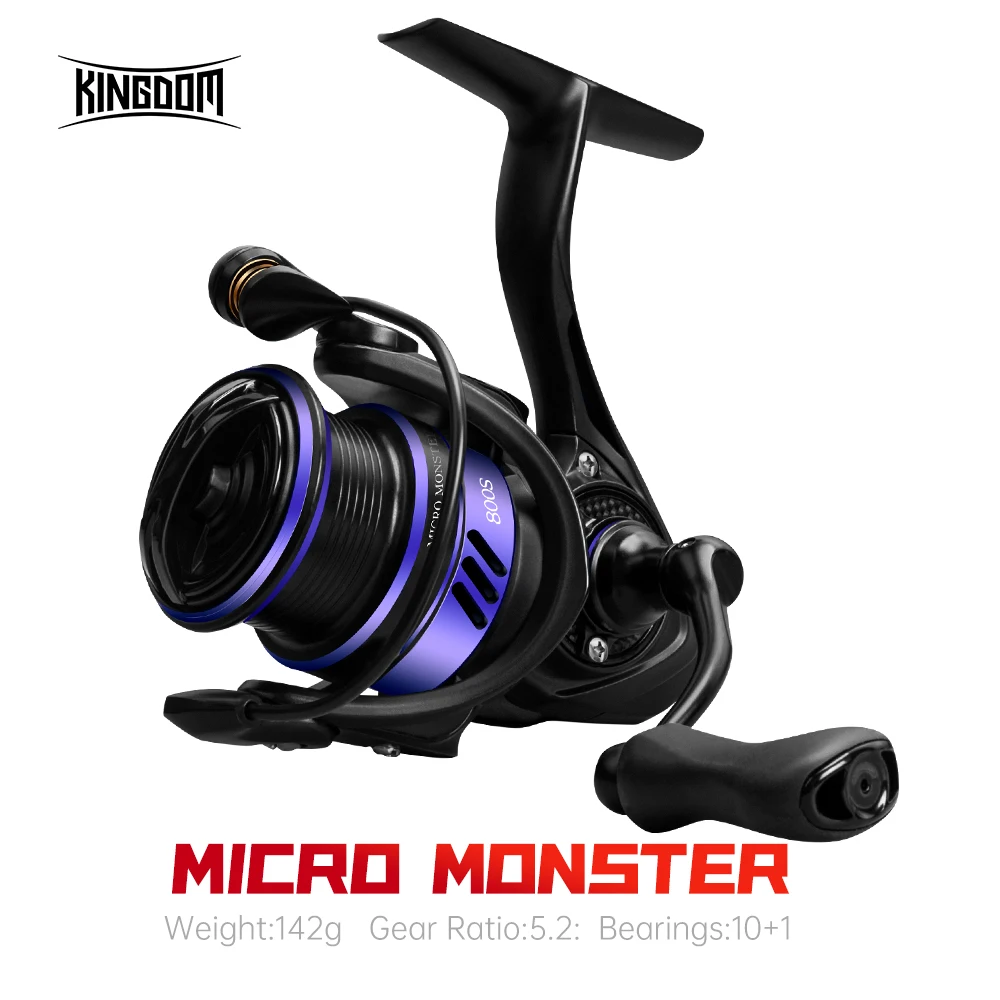 Carretes de pesca giratorios de fibra de carbono Kingdom Micro Monster 800S 142g ultraligeros relación de engranaje 5,2:1 arrastrar máximo 3kg 10 + 1BB carrete de Metal