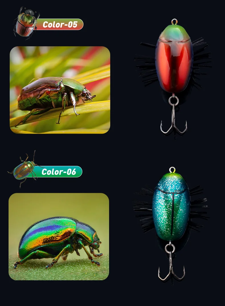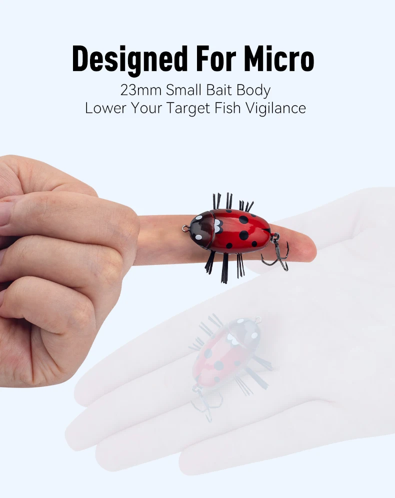 Kingdom Microbeetle 1,8G 3,3G Artificial Topwater Insecto Señuelo de pesca Anzuelo triple 14 #12 # Wobblers flotantes Insecto cebo Notobug