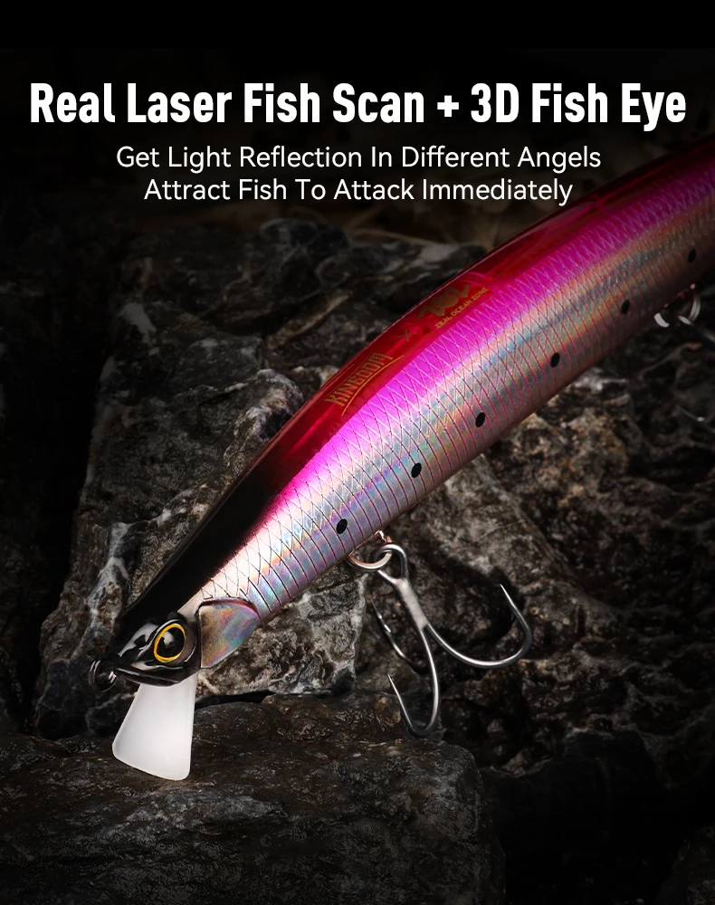 4.Los ojos láser 3D y las escalas reflectantes dinámicas reflejan la imagen mortal en todos los ángulos, ¡atrayendo peces en la baba!