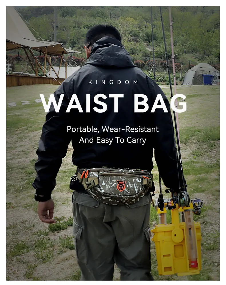 Kingdom-mochila de pesca con señuelo multifuncional, 20x11x11cm, riñonera táctica impermeable para pecho y cintura, bolsa de aparejos para deportes al aire libre