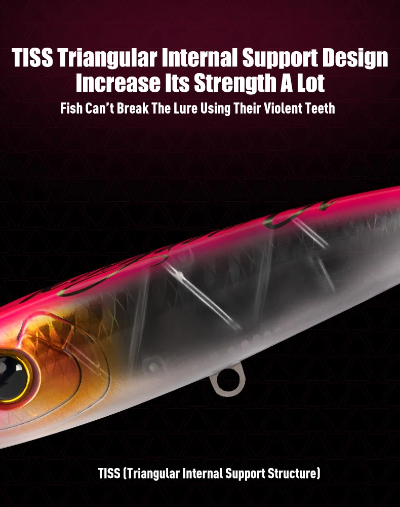 - Diseñado para potentes especies de agua salada como GT, 160 mm/180 mm de longitud y pesa 56,5 g/79,5 g, lanza largas distancias y resiste golpes fuertes.