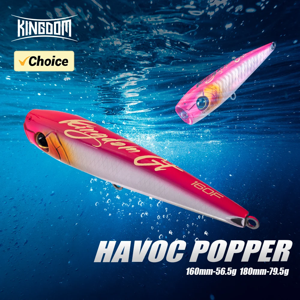 Kingdom Popper Señuelos de pesca de mar 160mm 56.5gg 180mm 79,5g Topwater Artificial duro Wobbler flotante cebo de atún de agua salada