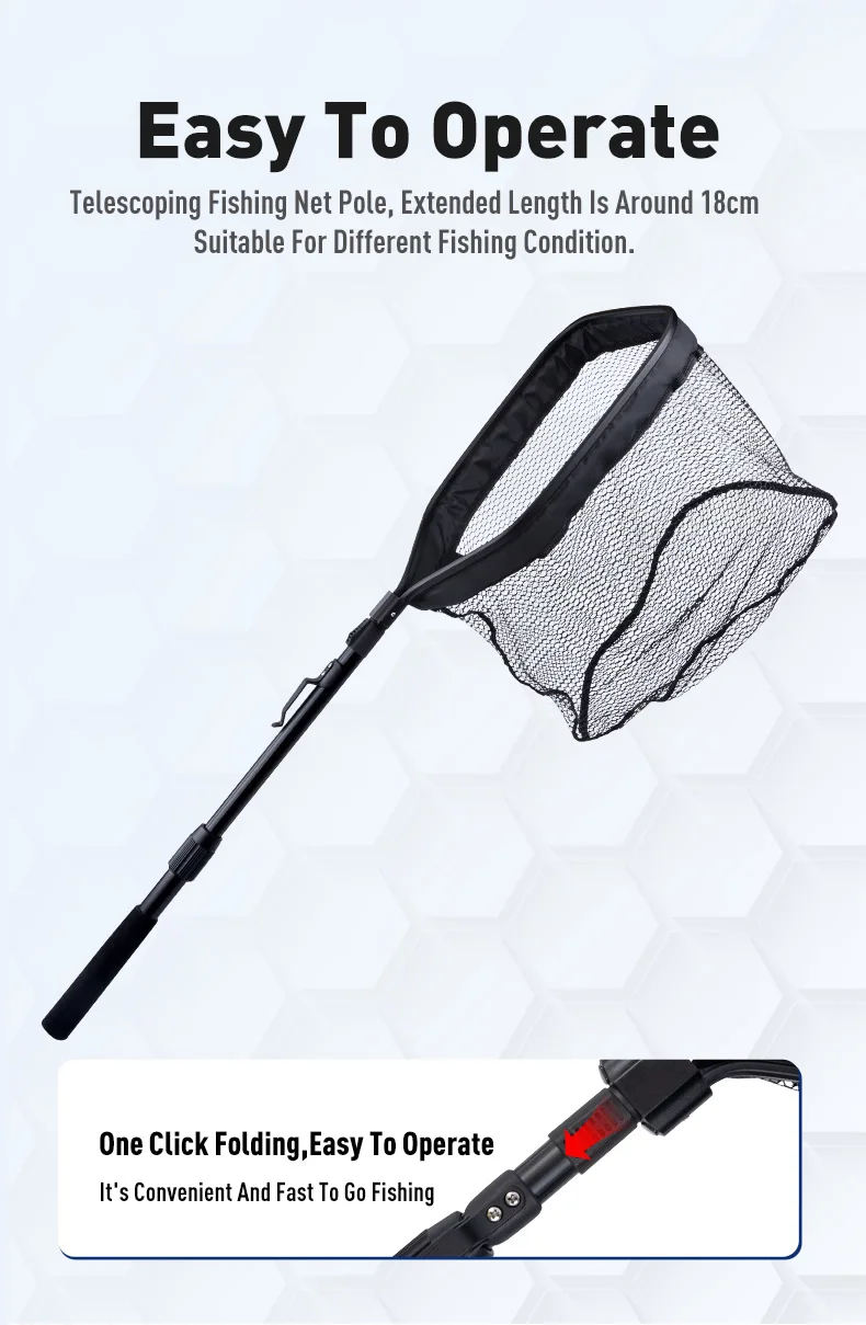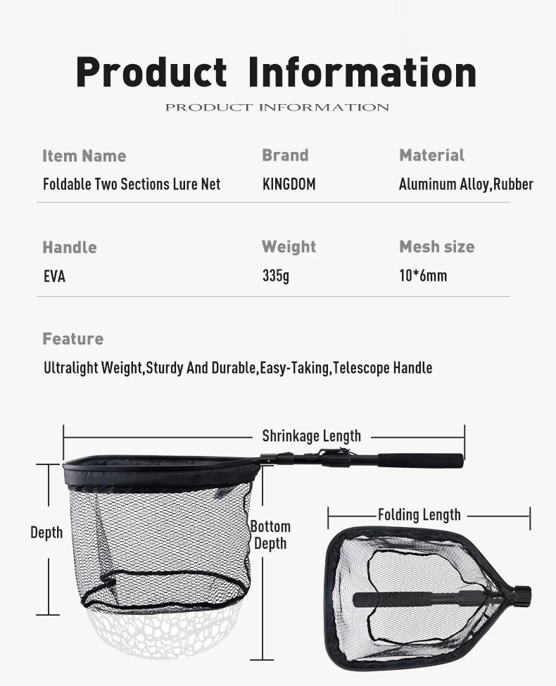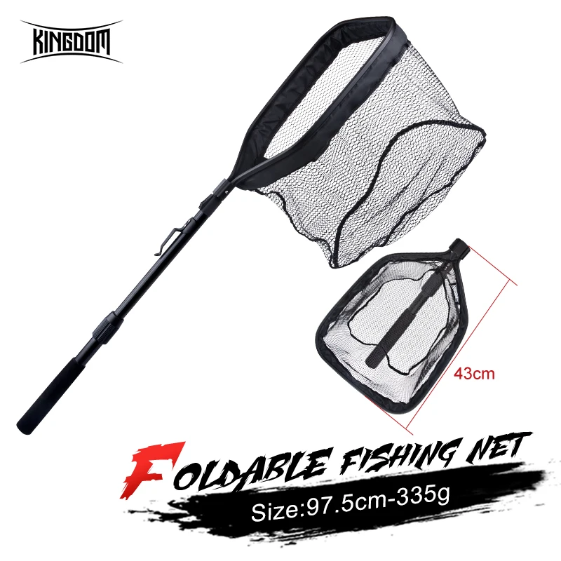 Red de pesca plegable Kingdom, Red de aterrizaje de aleación de aluminio, poste plegable, aparejos de pesca con mosca, redes de señuelos para herramienta de pesca de invierno