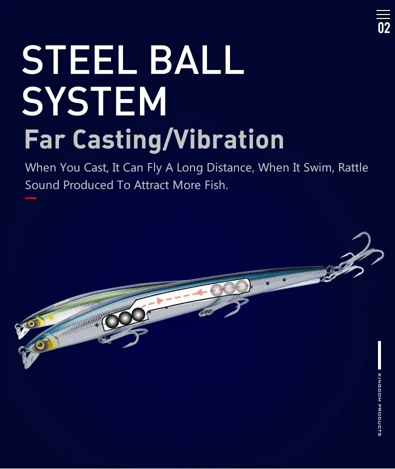 ● Hay bolas de acero dentro del cuerpo del señuelo, el centro de gravedad se mueve hacia atrás después de la fundición.
