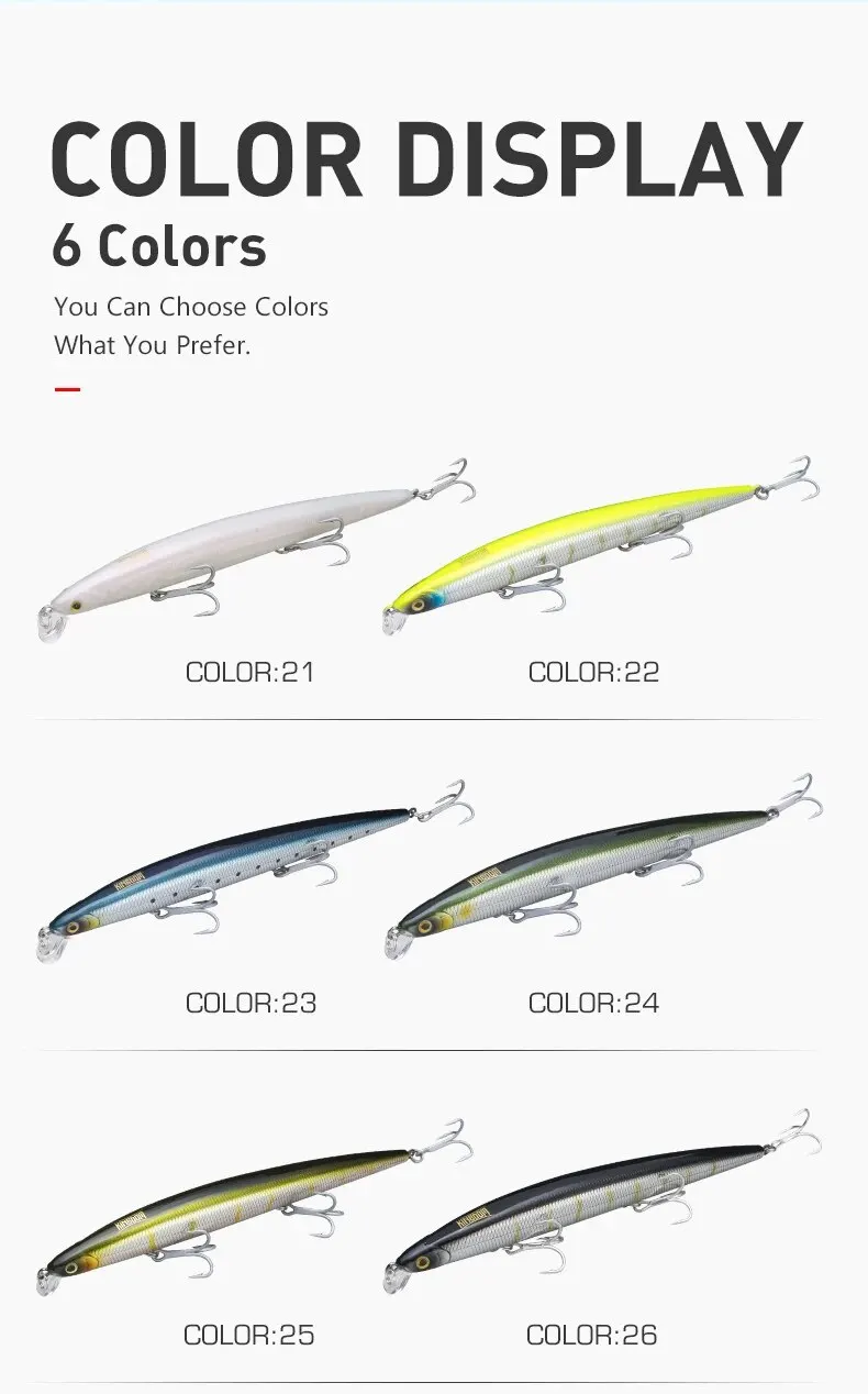 ● Tamaño y acción: 180mm 29G flotante; 180mm 33g hundimiento