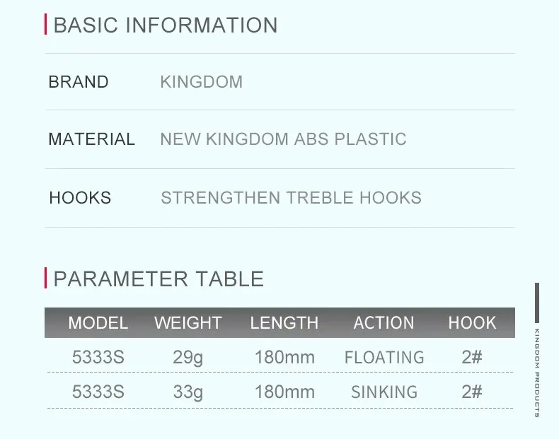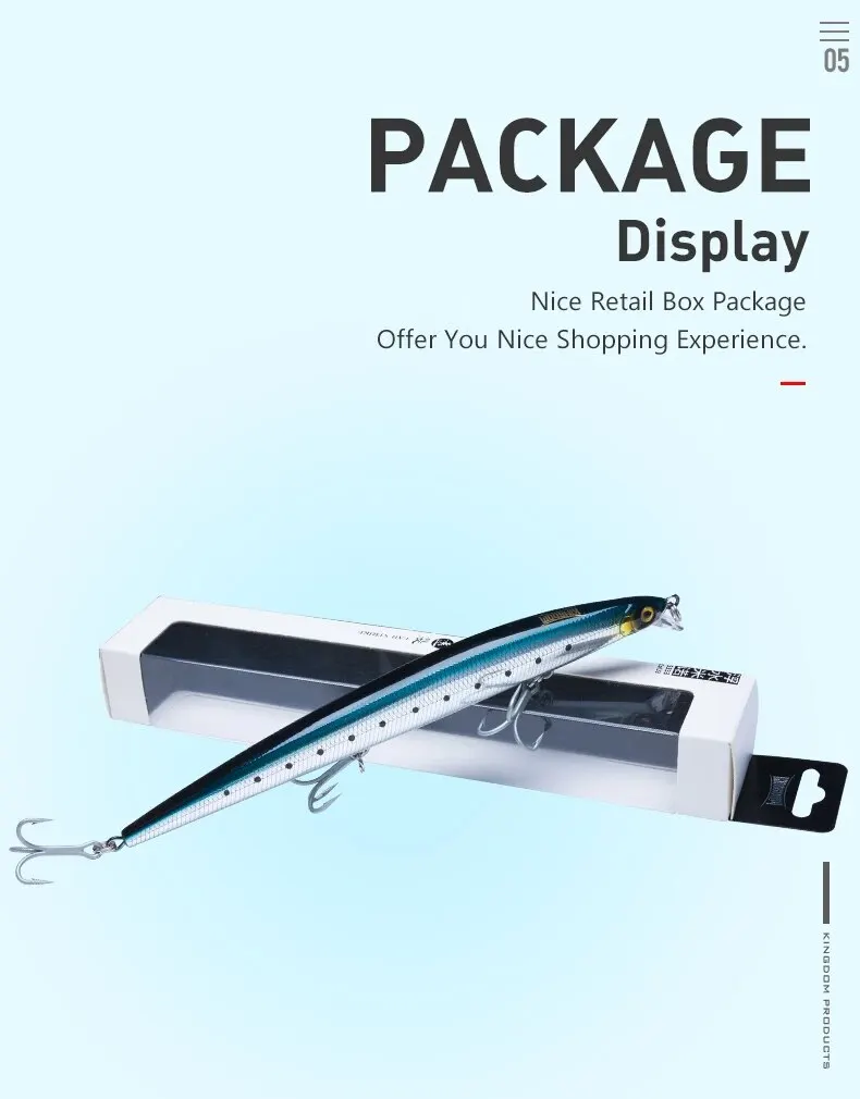 ● Tamaño y acción: 180mm 29G flotante; 180mm 33g hundimiento