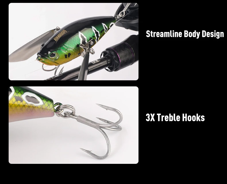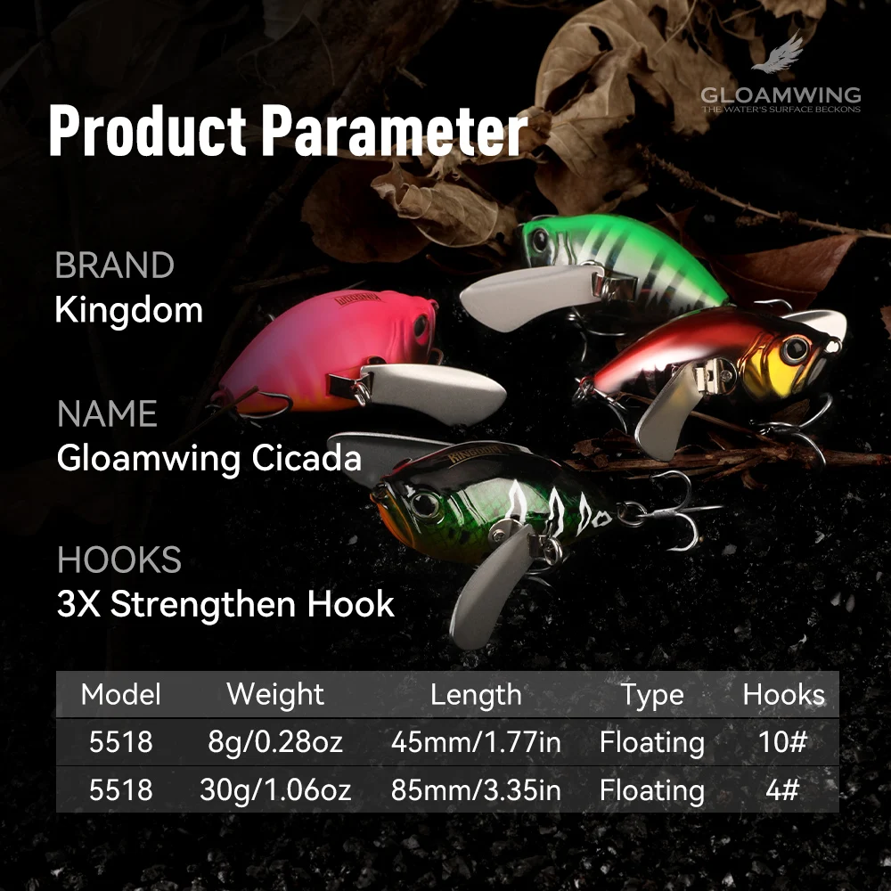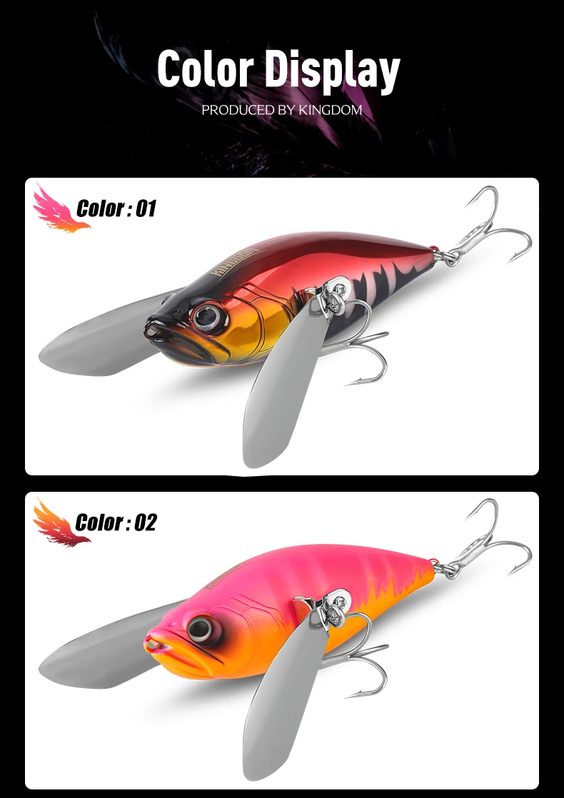 Kingdom-señuelo de pesca flotante biónico Topwater, 8g, 30g, 45mm, 85m, alas de Metal, cebos de pesca duros artificiales ruidosos, perca para lubina