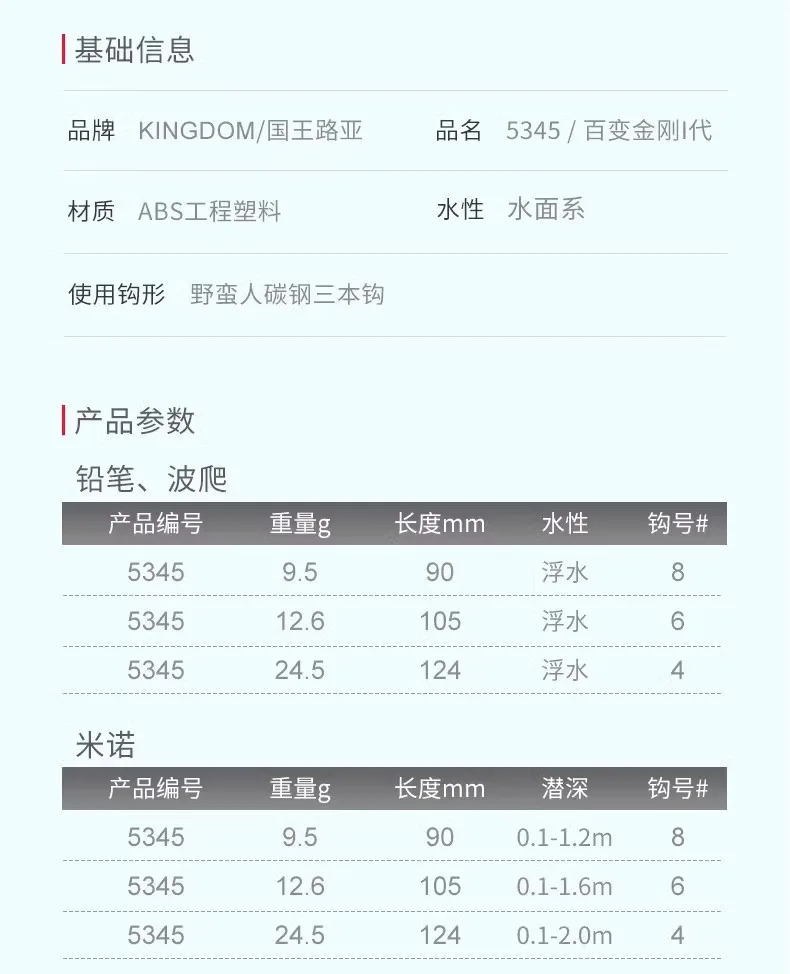 Kingdom-señuelo de pesca para gatear, sistema de superficie Mino flotante de largo alcance, ONDA DE LÁPIZ, King Kong 5345 Variant, cebo falso