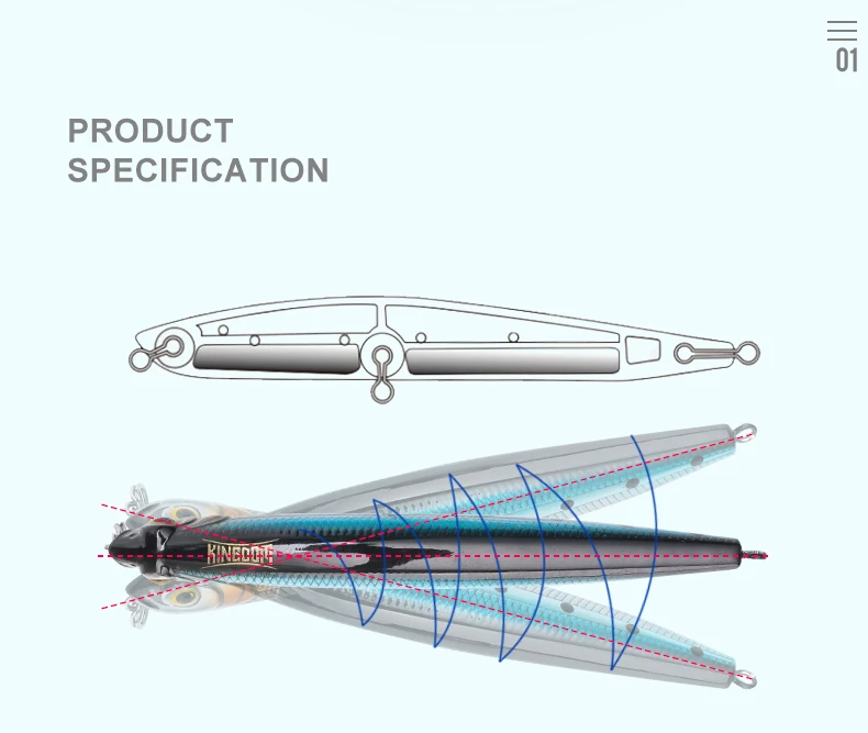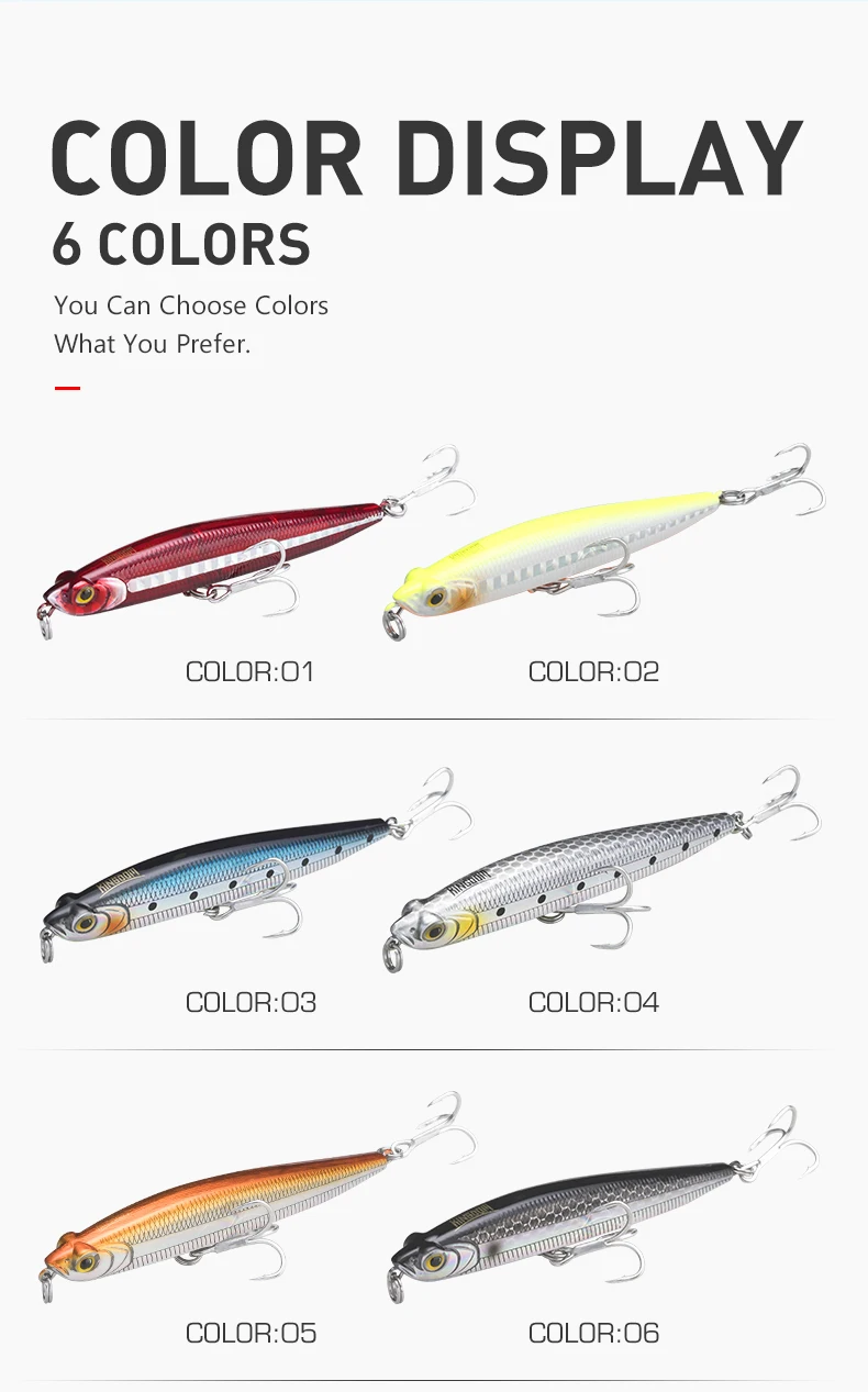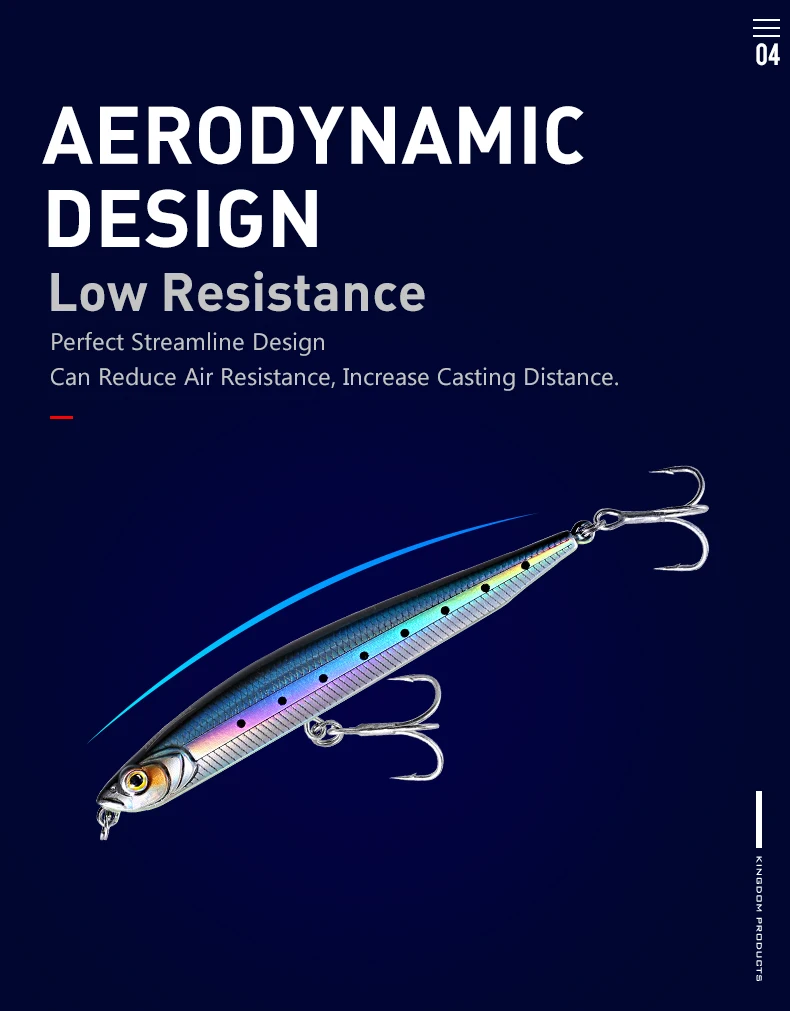 6. Diseño aerodinámico, reduce la resistencia al lanzamiento, entra poco ruido en el agua; lanzamiento largo, Jerking, choque entre sí para atraer más peces