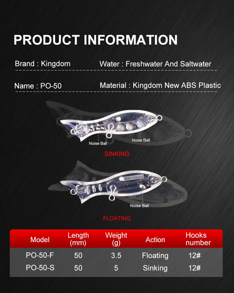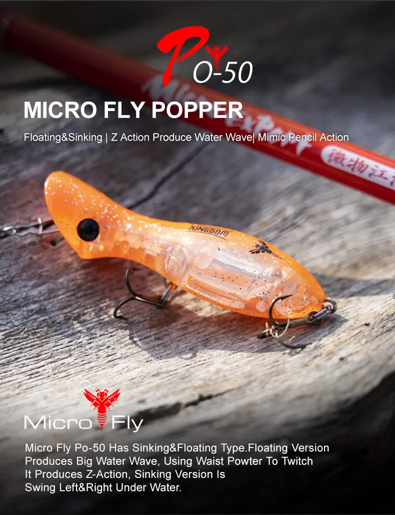 Kingdom-señuelo de pesca Mini Popper, 50mm, 3,5g, flotante, 5g, hundimiento, cebos duros artificiales, Wobblers, Lucio, bagre, Swimbait Minnow