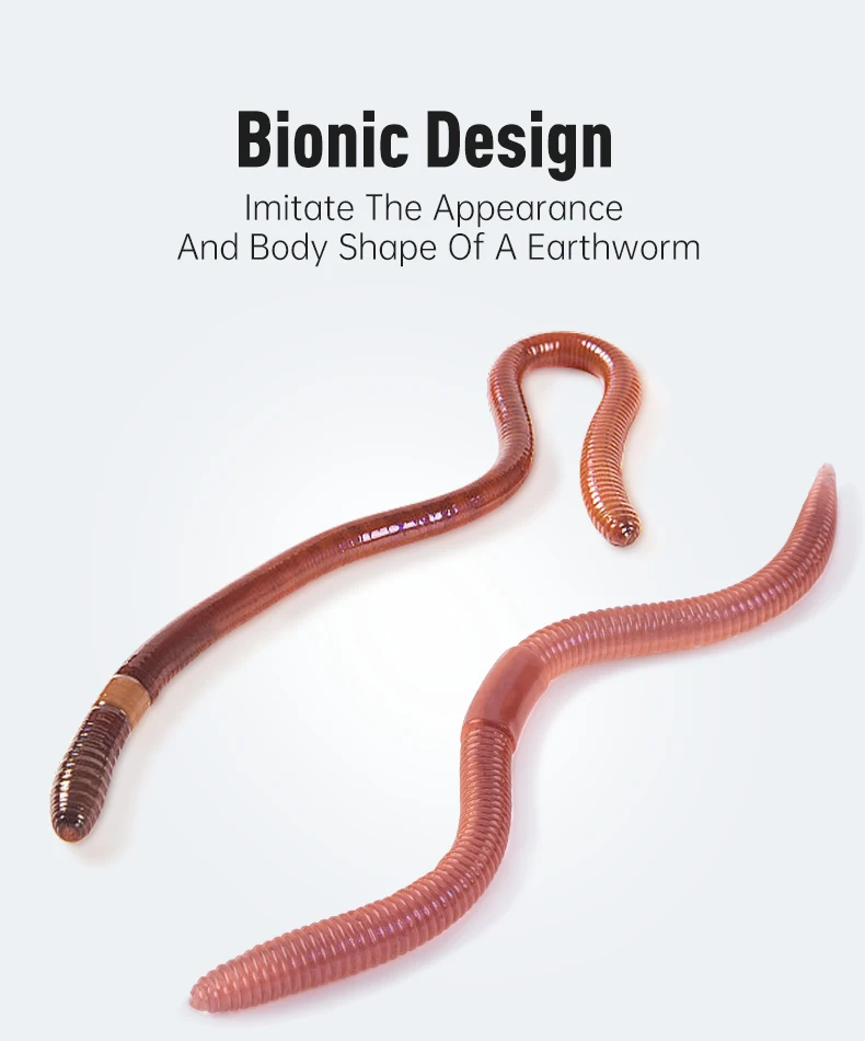 El señuelo con forma de lombriz de tierra imita presas naturales, atrayendo una amplia gama de especies de peces.