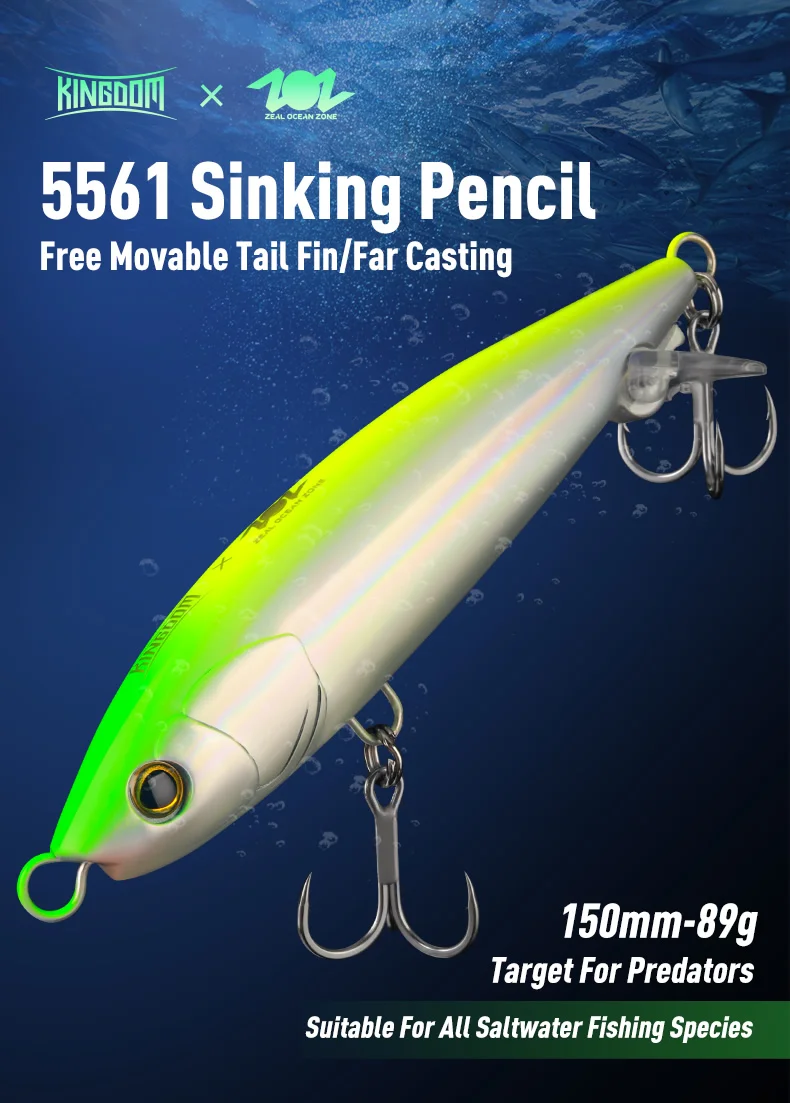 Kingdom-señuelo de lápiz hundido, 150mm, 89g, lanzamiento lejano, burbuja oscilante de alta frecuencia, alambre de acero inoxidable, cebo de pesca de agua salada, lubina