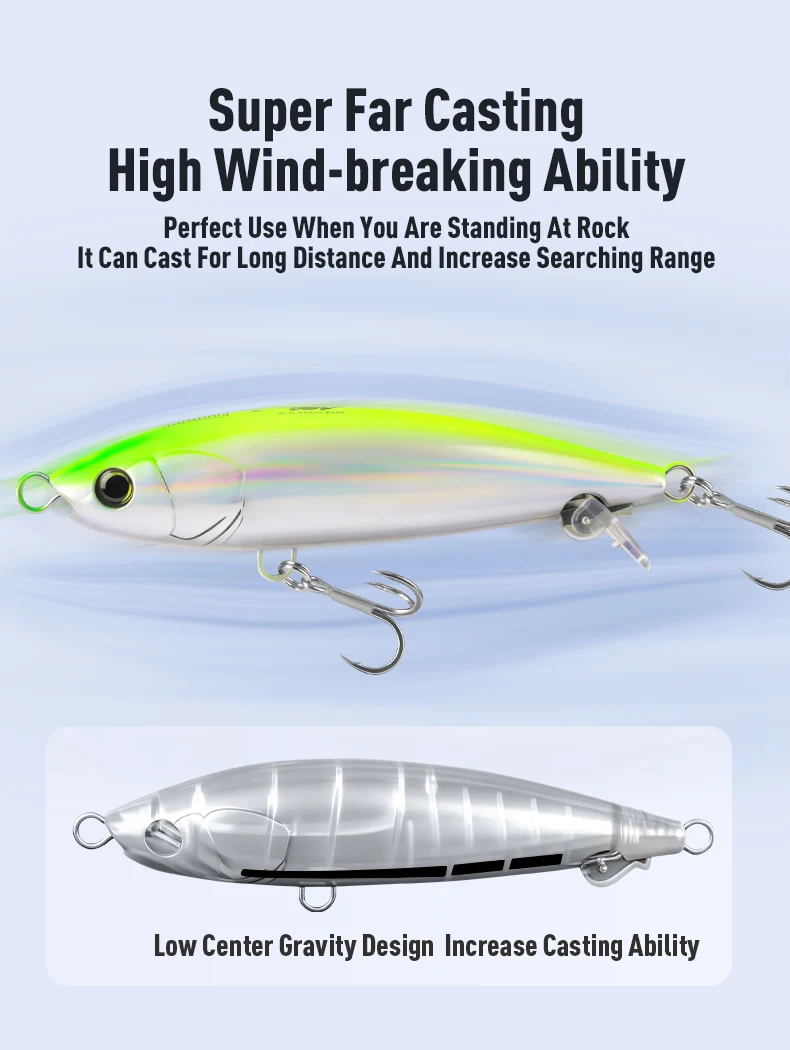 Rendimiento de lanzamiento súper largo: diseño de centro de gravedad bajo y resistencia al viento, ¡rasbriendo el aire como una bala!¡El rango de búsqueda aumenta exponencialmente!