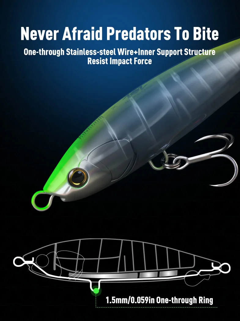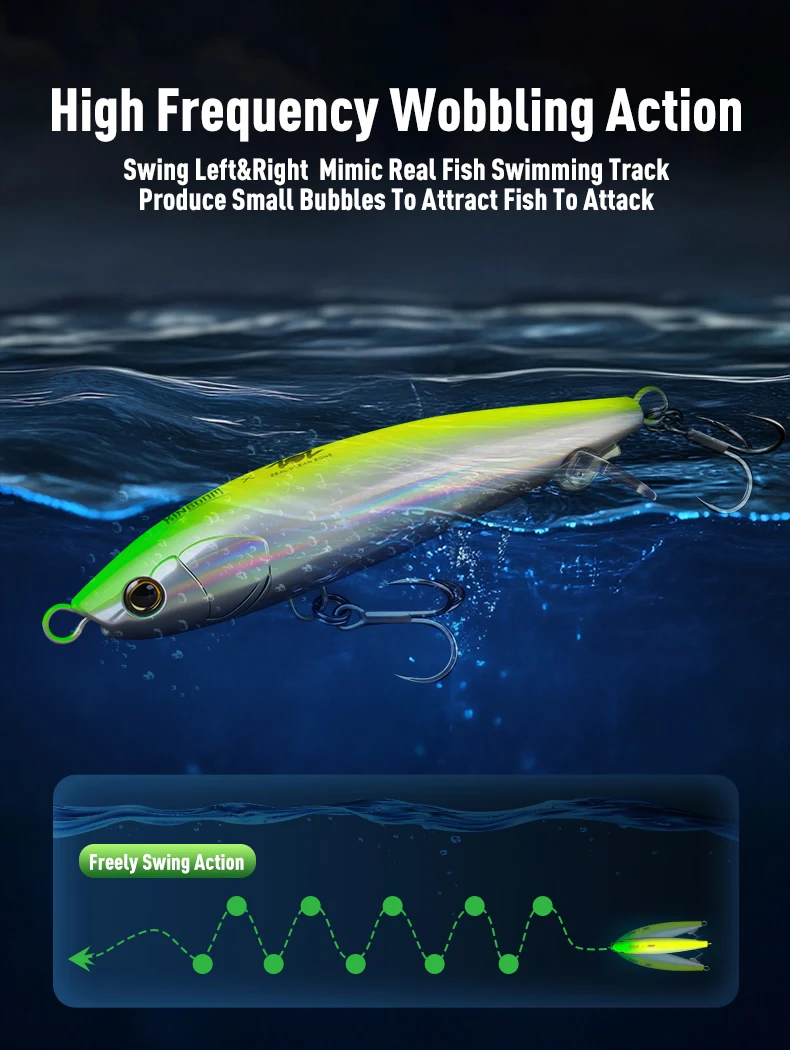 El balanceo de alta frecuencia izquierda-derecha + diseño exclusivo de cola simula la lucha morir de un pez pequeño lesionado, ¡una tentación irresistible para los depredadores!