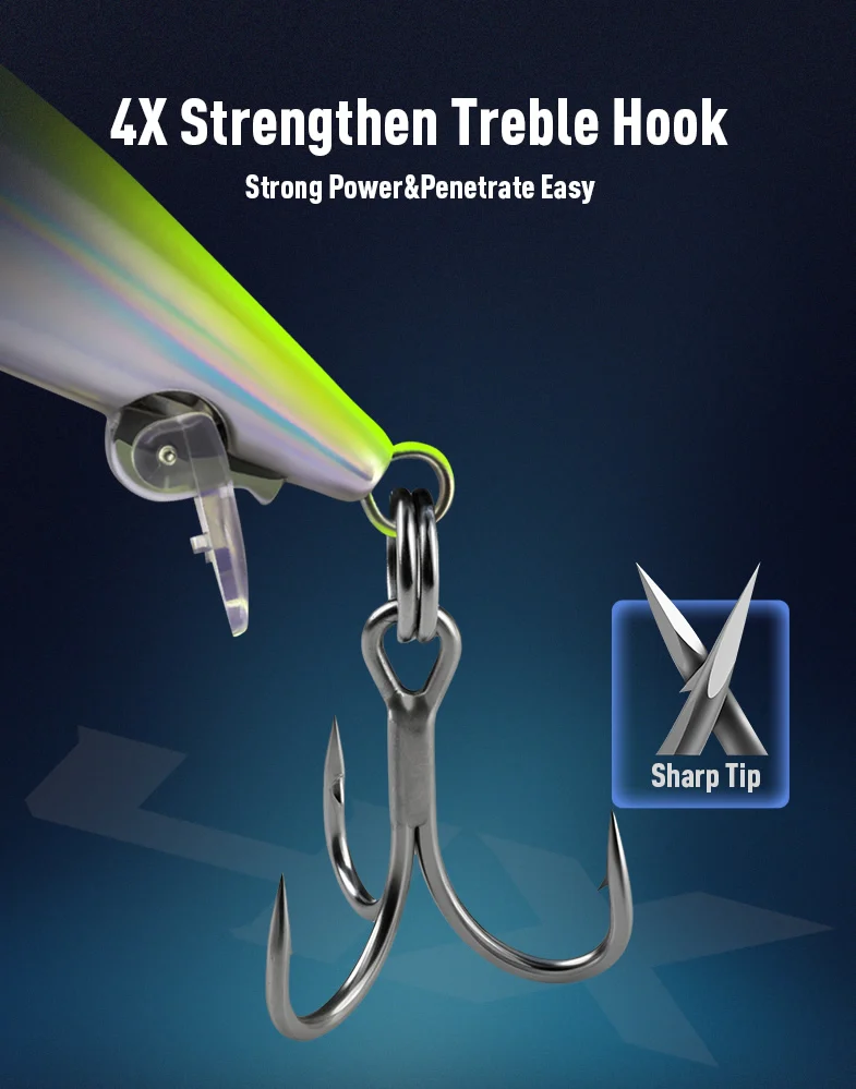 ¡Gancho triple reforzado 4X!Poder súper penetrante, sin retroceder, una vez que golpea, ¡es un matiz!