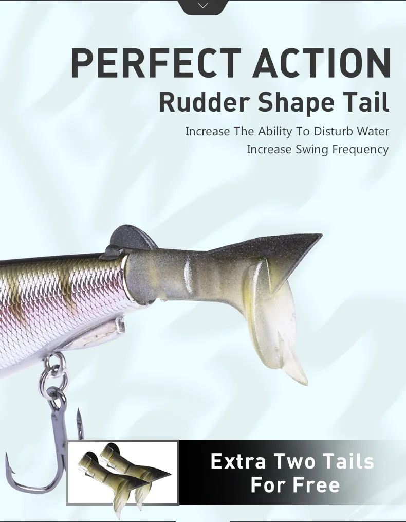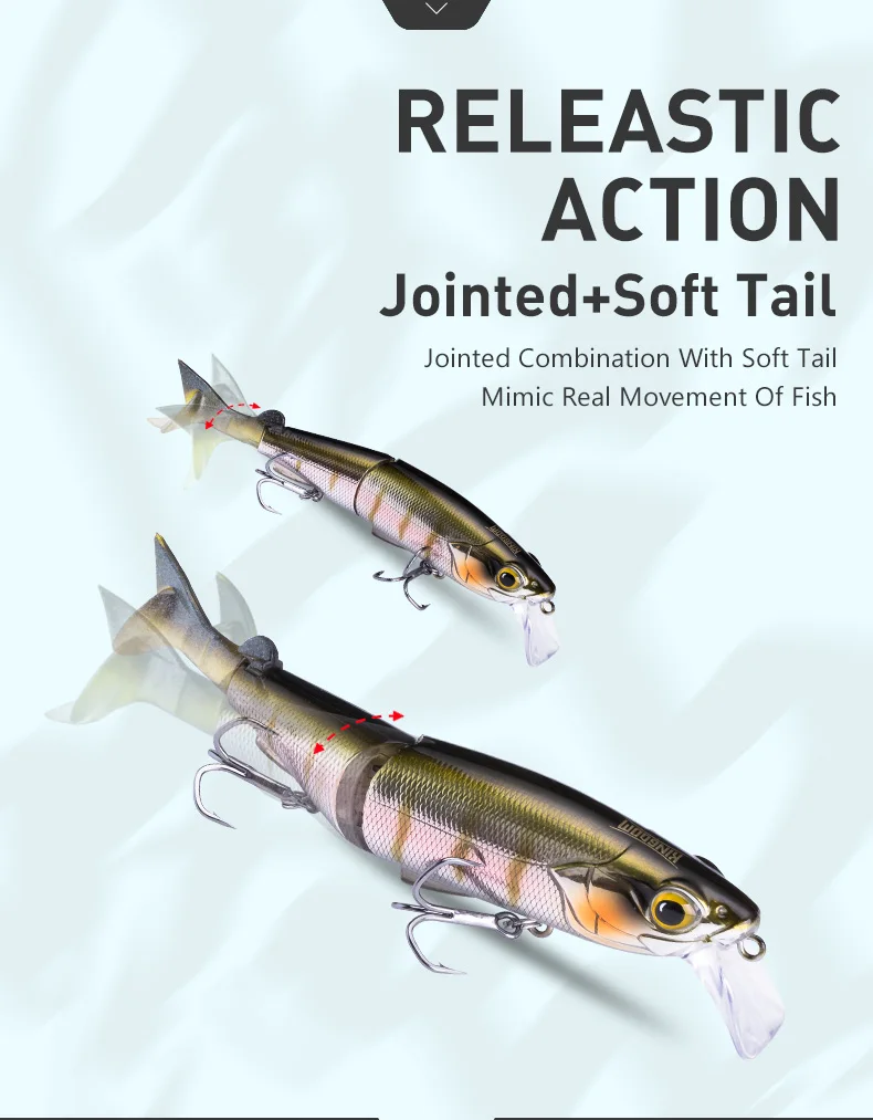 KINGDOM Señuelos de pececillo multiarticulados 120mm 17,5g Superficie flotante cebos duros Minnow Swimbait trucha Wobblers duros señuelo de cola en T suave