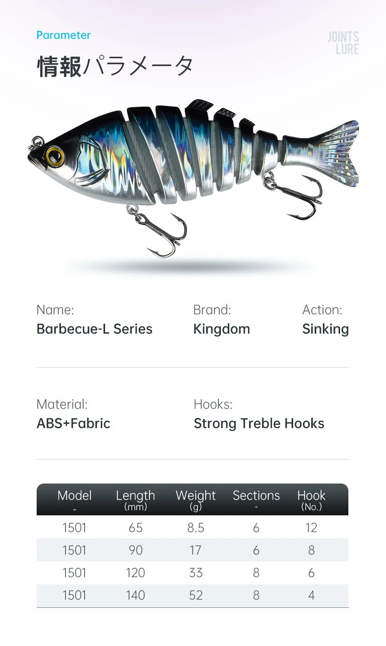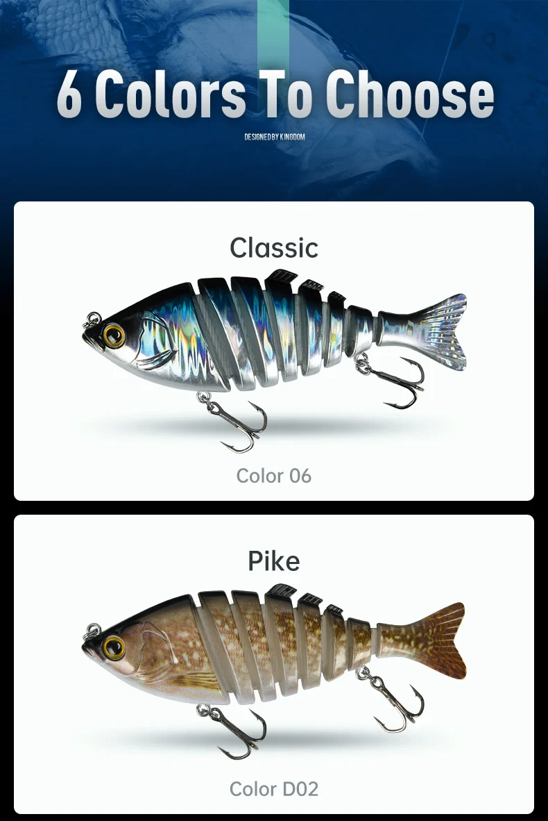 Kingdom Hot Barbacoa Señuelos de Pesca 6 y 8 Articulaciones Cebos Duros 65mm 90mm 120mm 140mm Hundimiento Wobblers Realista Swimbaits Señuelo Para Bass