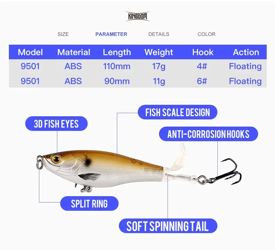 Kingdom-Señuelos de Pesca con cola giratoria, cebos artificiales blandos, 9cm/11g, 11cm/17g, 9501