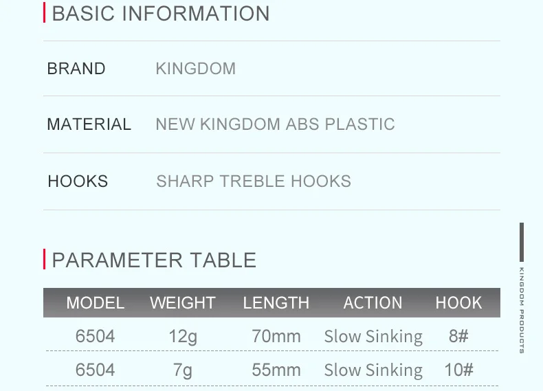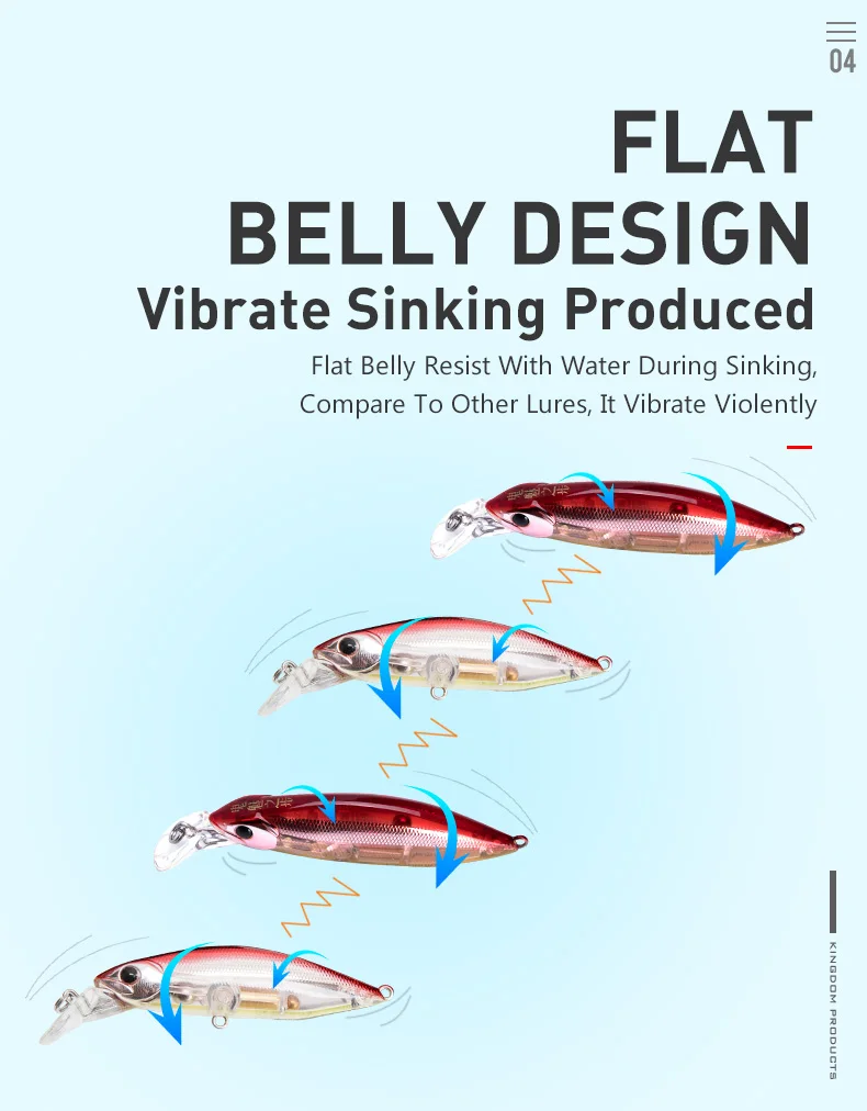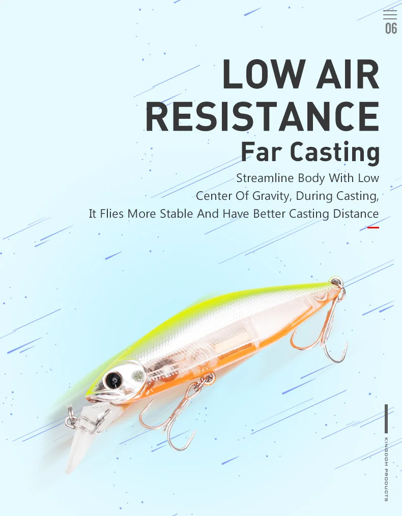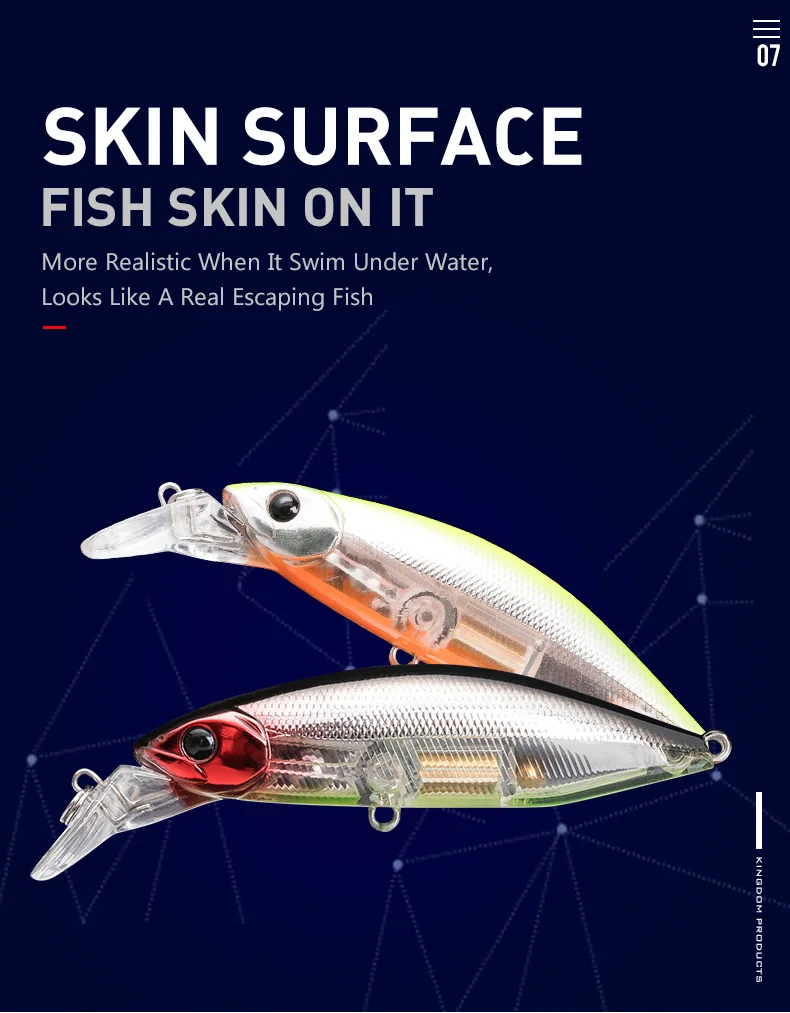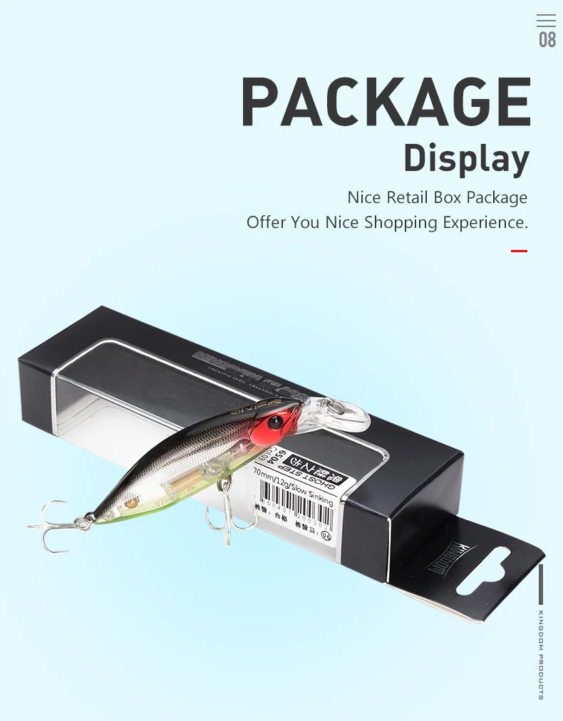 Kingdom-señuelos de pesca Minnow de hundimiento lento, 70mm, 12g, 55mm, 7g, cebos artificiales, Wobblers duros para pesca de lubina
