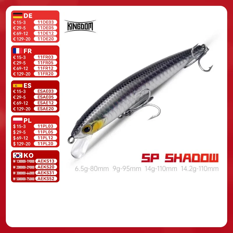 Señuelo de pesca KINGDOM SP Shadow, Minnow suspendido, 80mm, 95mm, 110mm, Wobblers artificiales de alta resistencia, Señuelos de aparejos de cebo duro Jerkbait