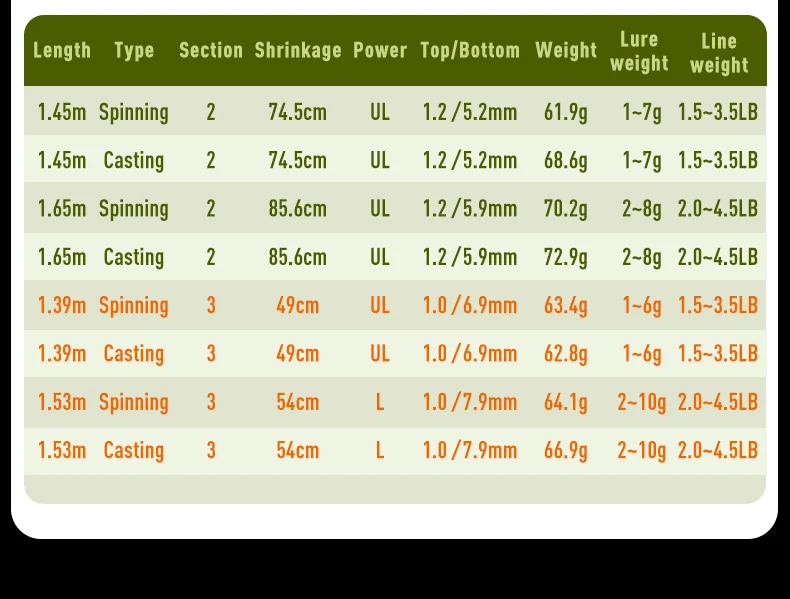 Caña de pescar UL&L Super Soft, ligera hasta 61,9 g.