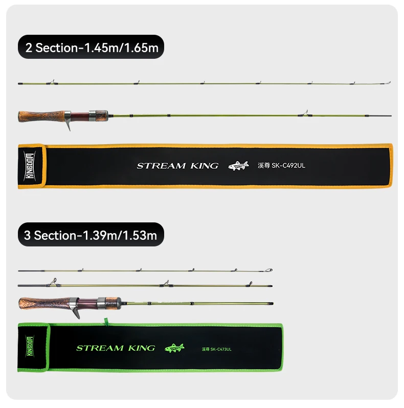 Kingdom STREAM KING Cañas de carbono ultraligeras MF Cañas de pescar de fundición giratorias de acción 2 y 3 secciones Caña de viaje de potencia UL L