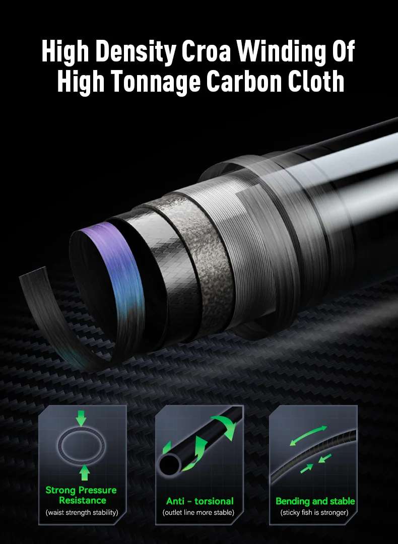 Micro caña de pescar con alto contenido de carbono con 2 y 3 secciones.
