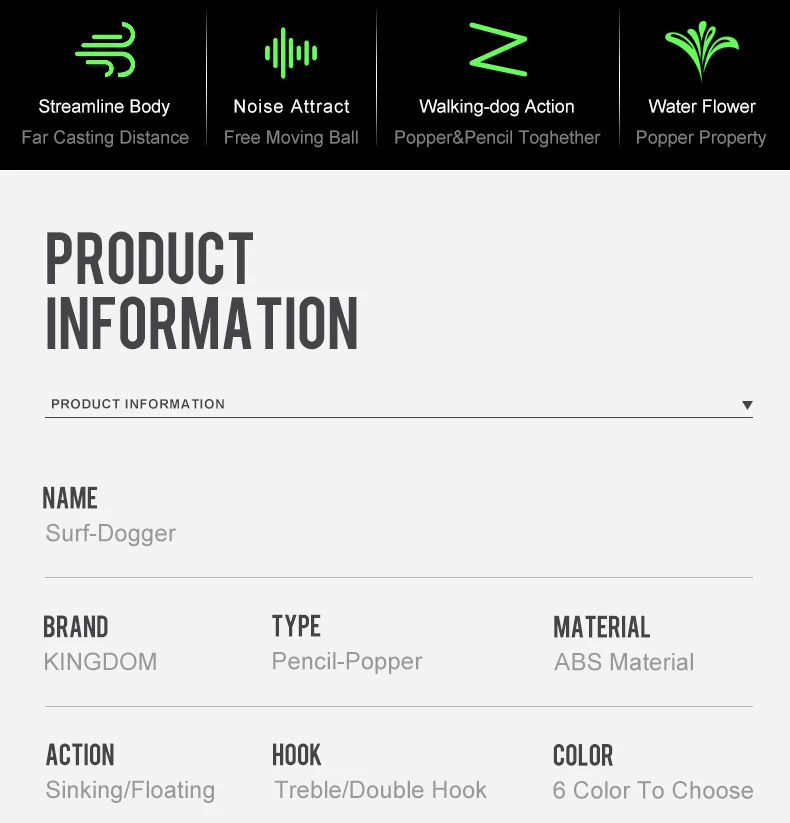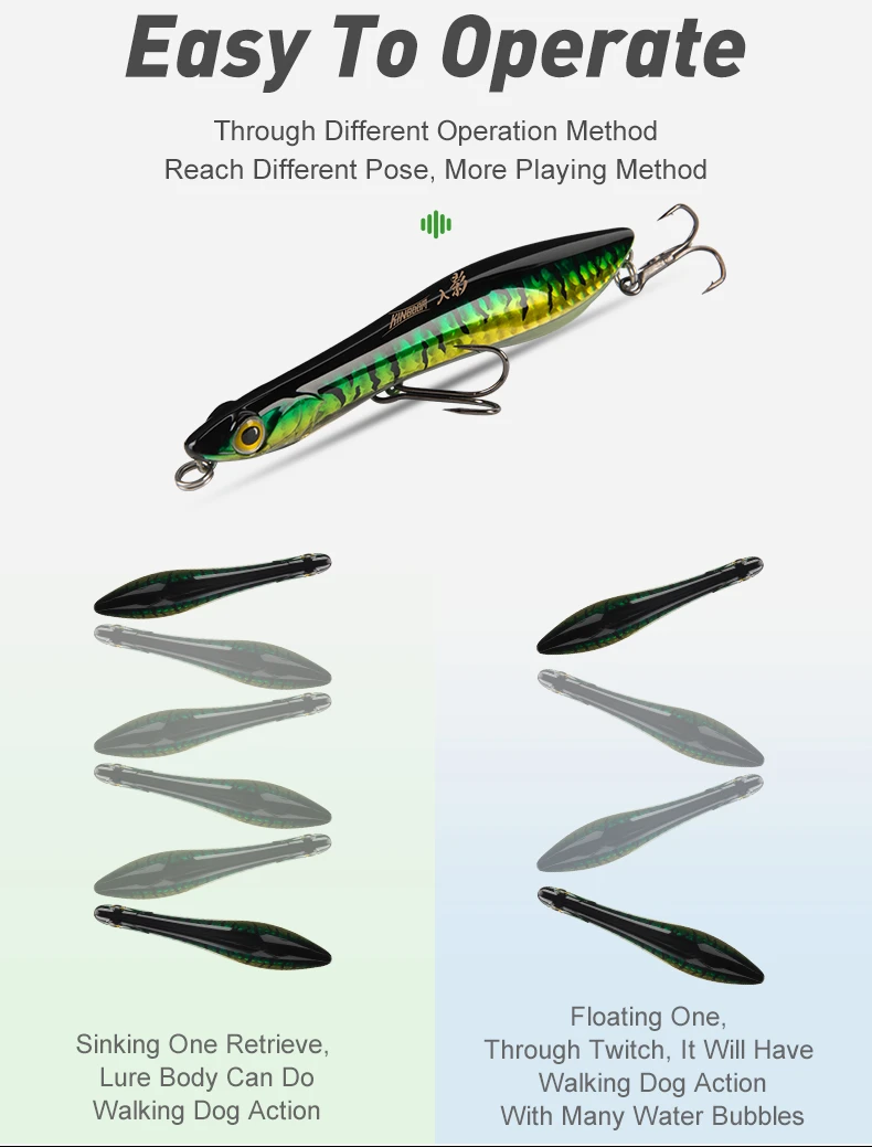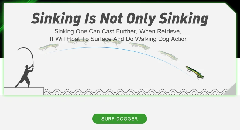 Kingdom Surf-Dogger Señuelos de pesca 95mm 110mm cebos duros flotantes y hundidos de fundición larga buena acción lápiz señuelo Popper Wobblers