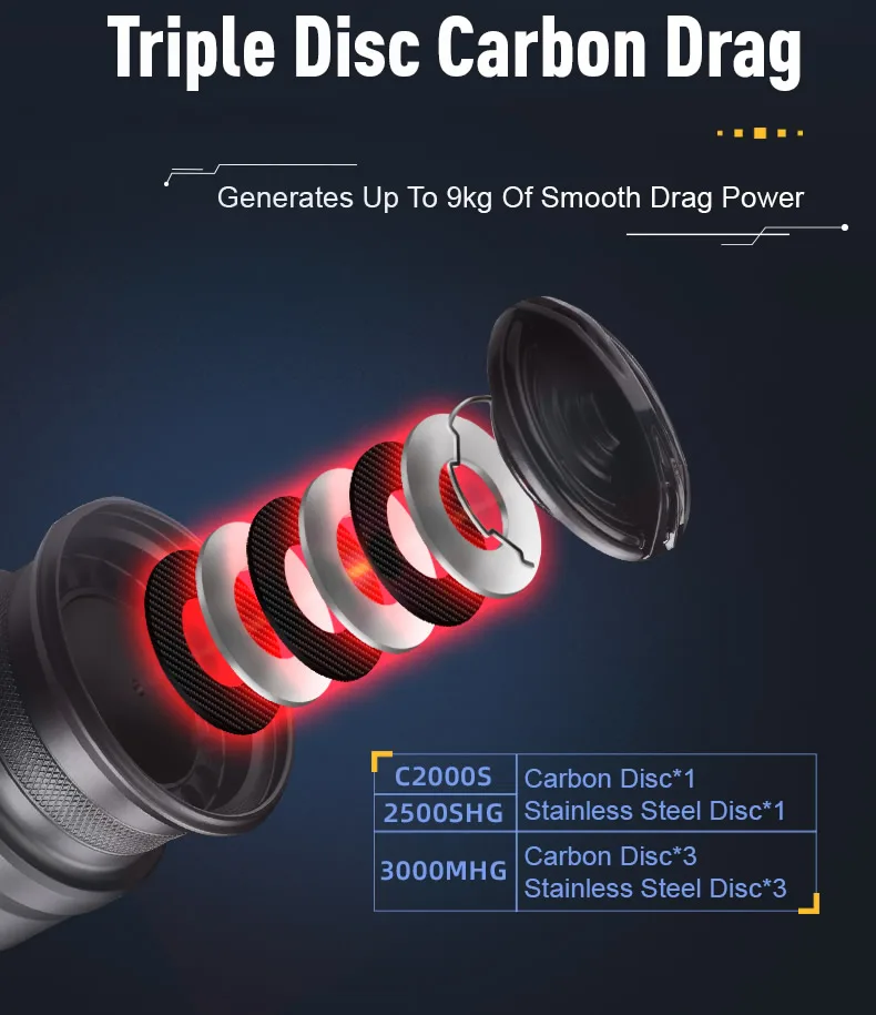 • Cuerpo de fibra de carbono ligero:El cuerpo de fibra de carbono ligero del carrete hace que sea fácil de manejar y reduce la fatiga durante largas sesiones de pesca.
